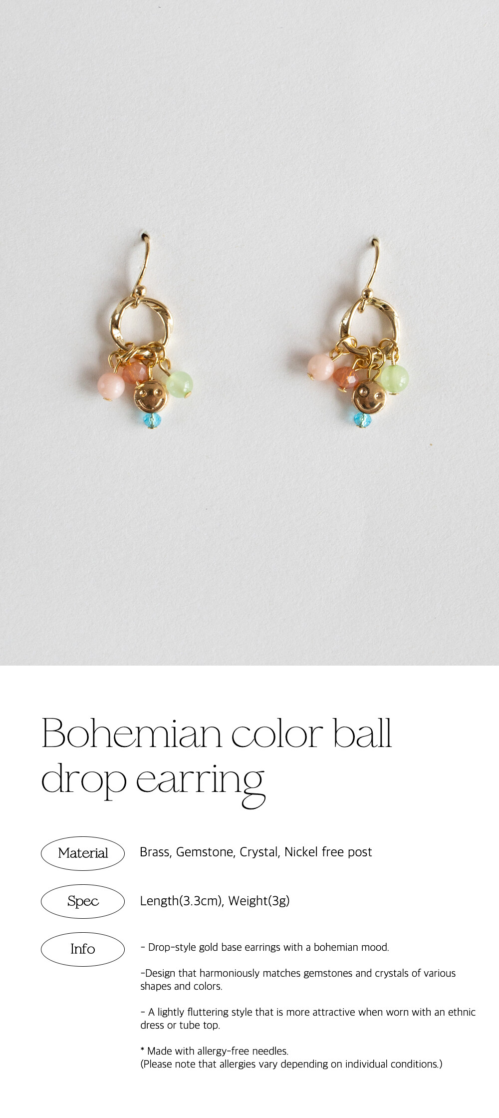Bohemian color ball drop earring