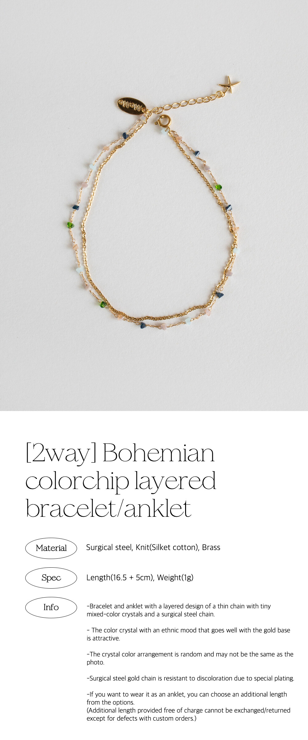 [2way] Bohemian colorchip layered bracelet/anklet