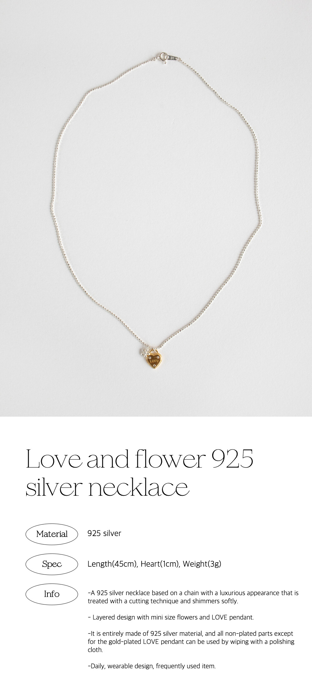Love and flower 925 silver necklace