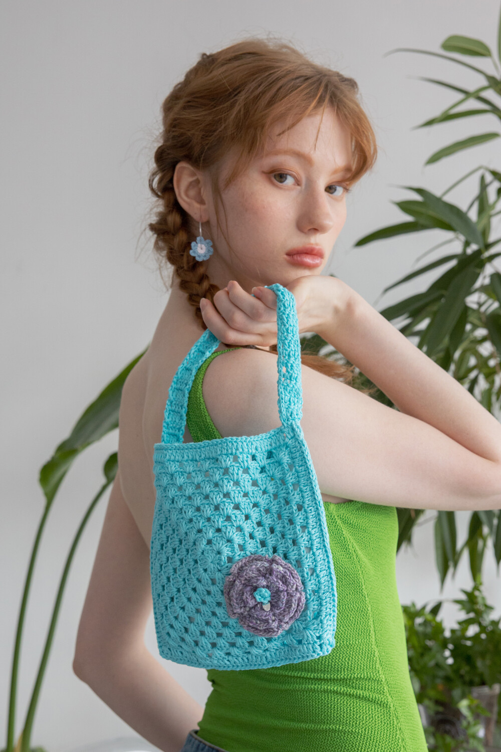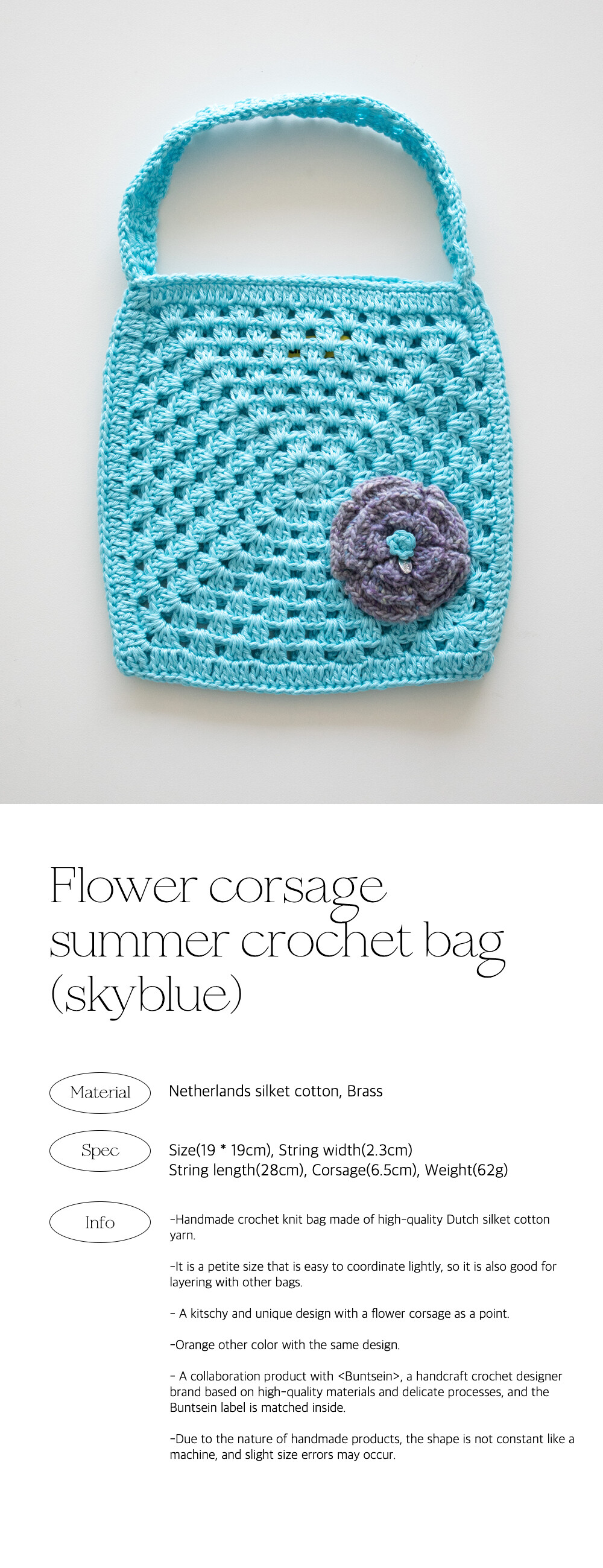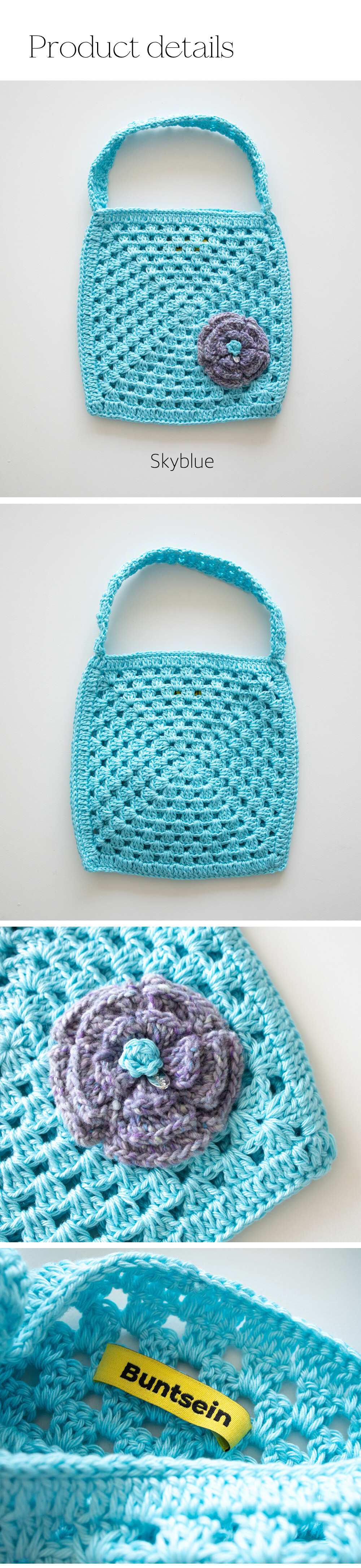 Flower corsage summer crochet bag (skyblue)