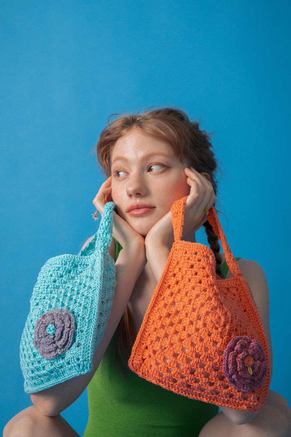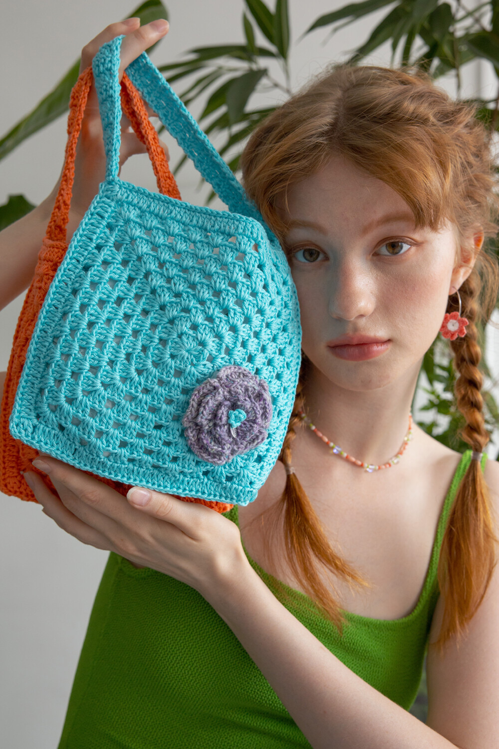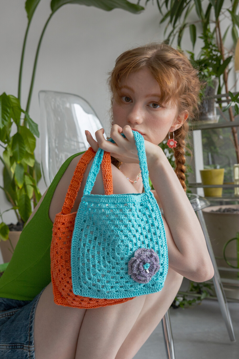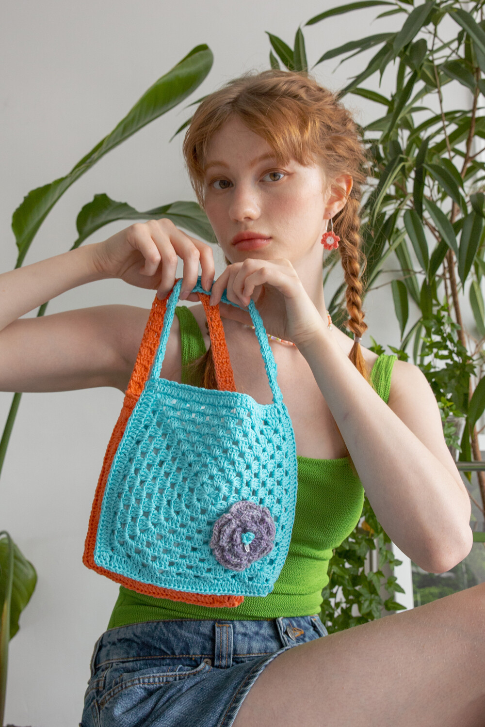 Flower corsage summer crochet bag (skyblue)