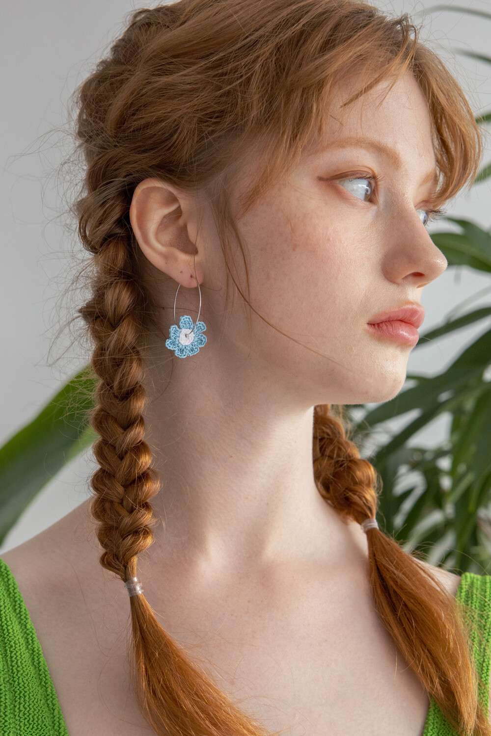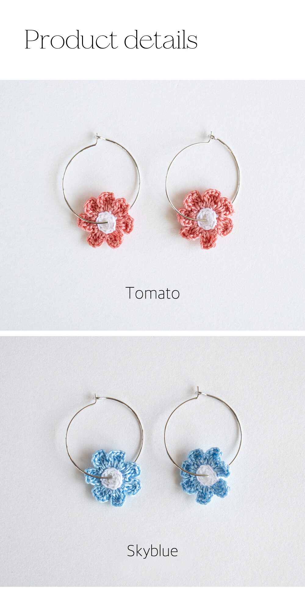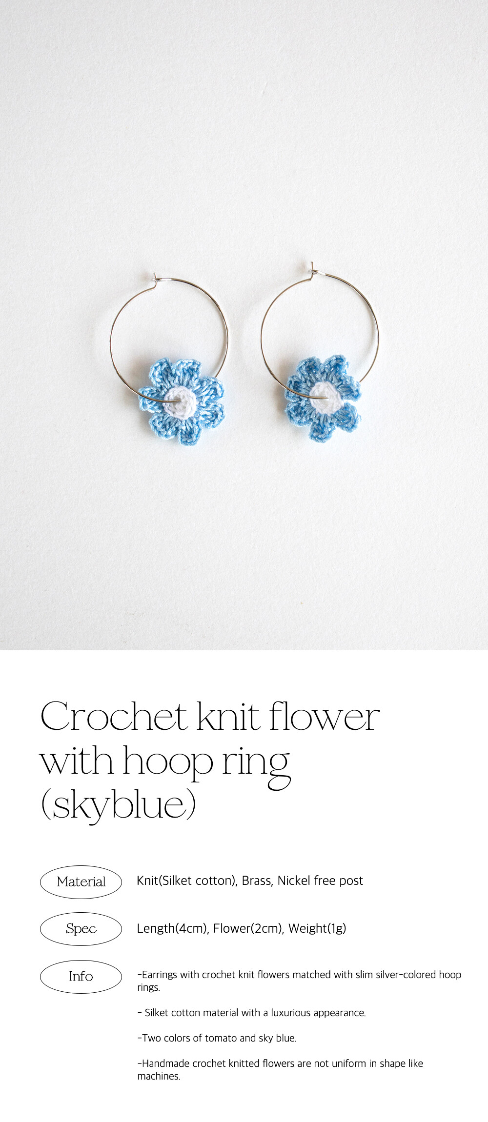 Crochet knit flower with hoop ring (skyblue)