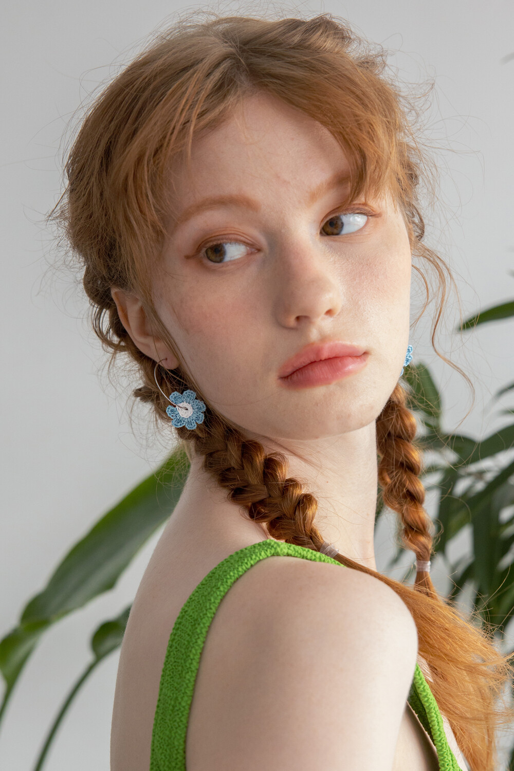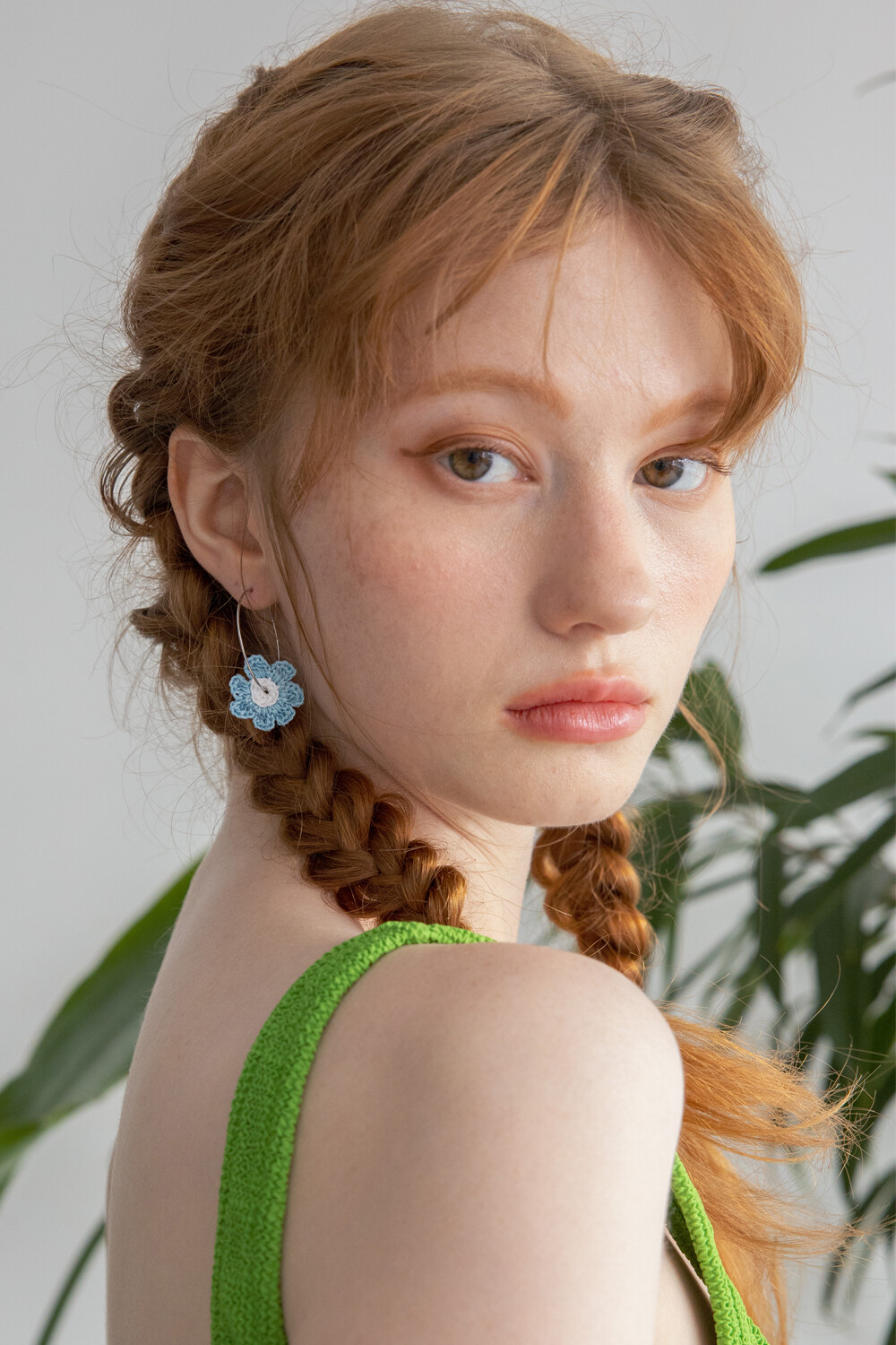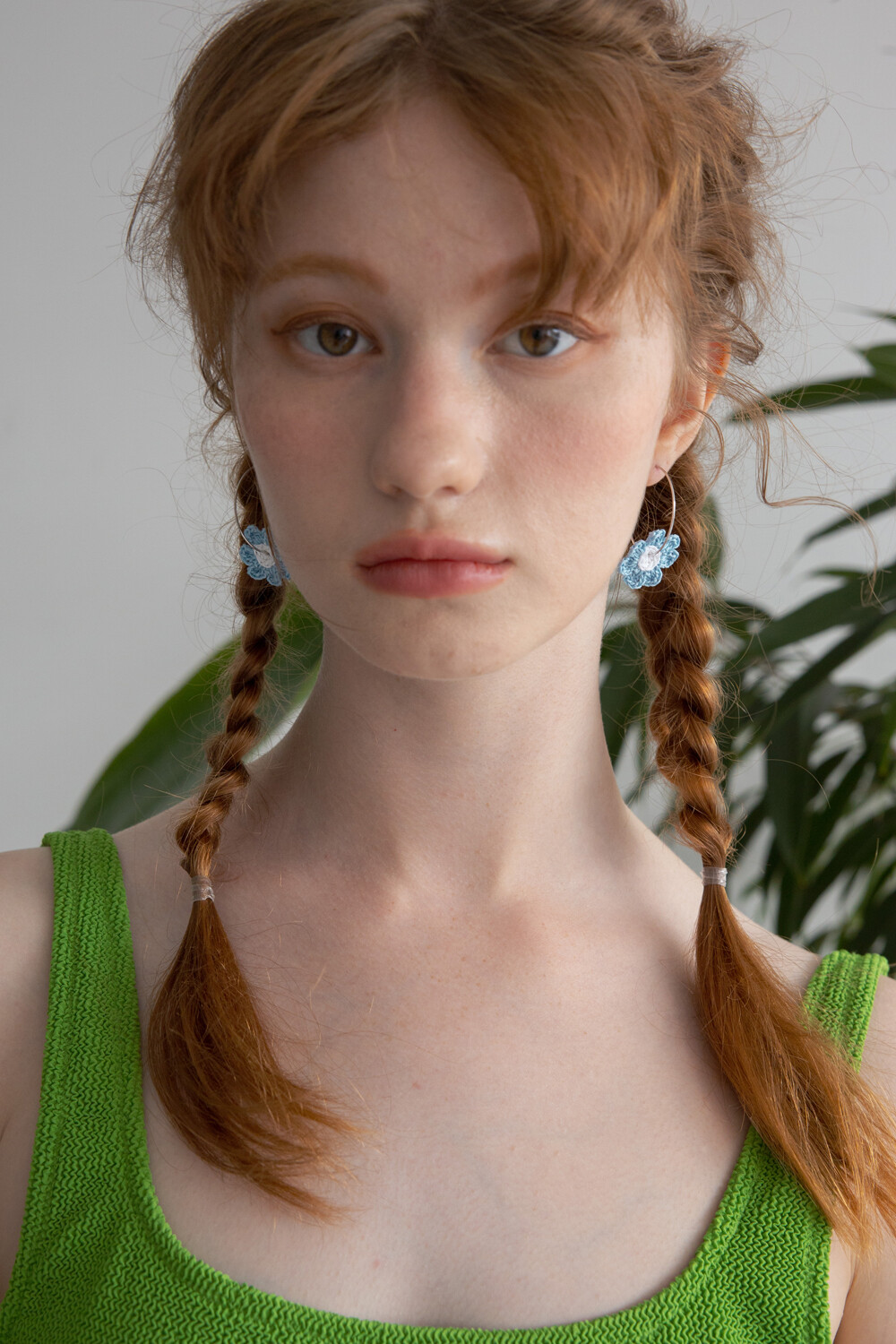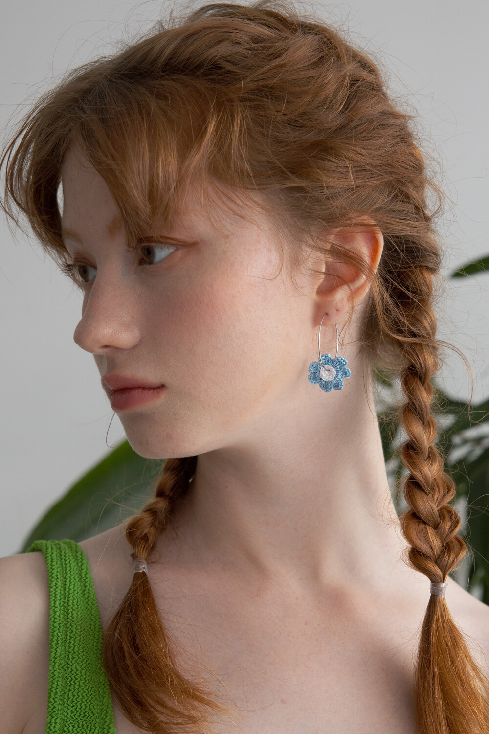 Crochet knit flower with hoop ring (skyblue)