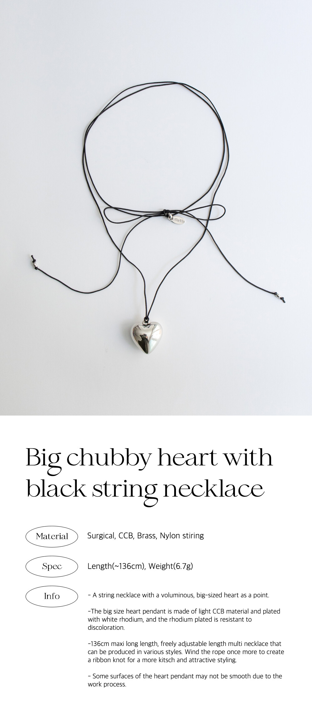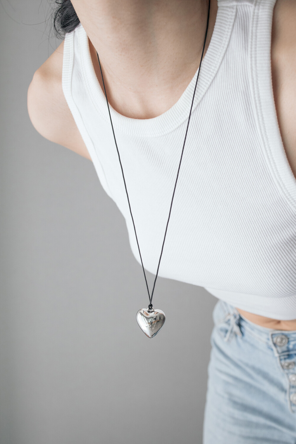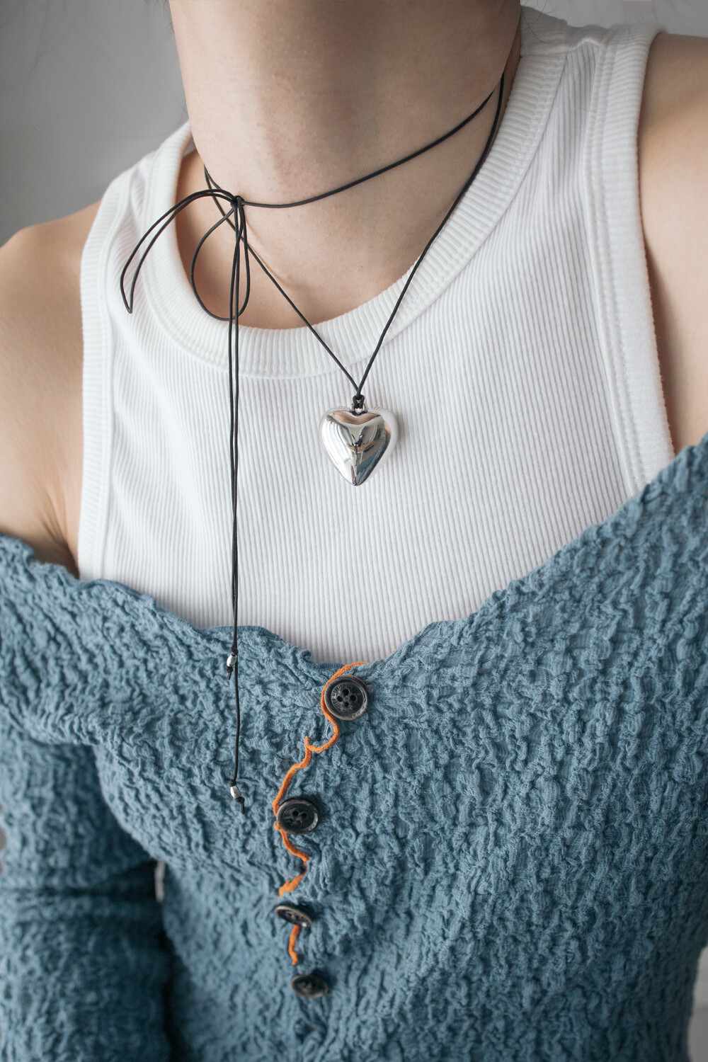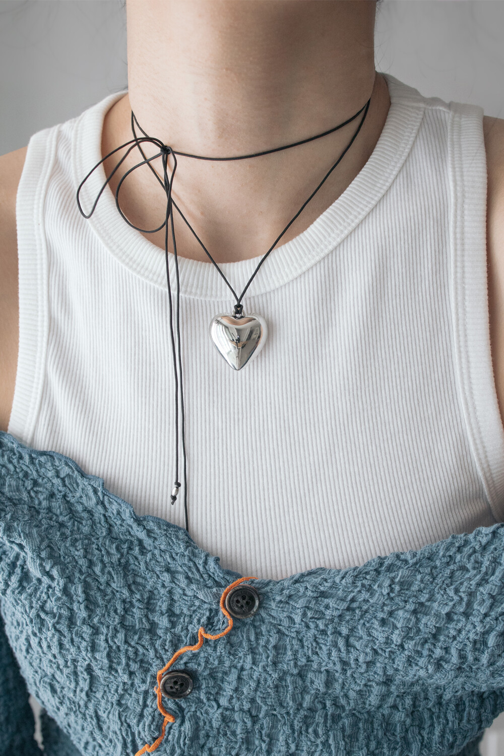 [Kim tae-ri] Big chubby heart with black string necklace