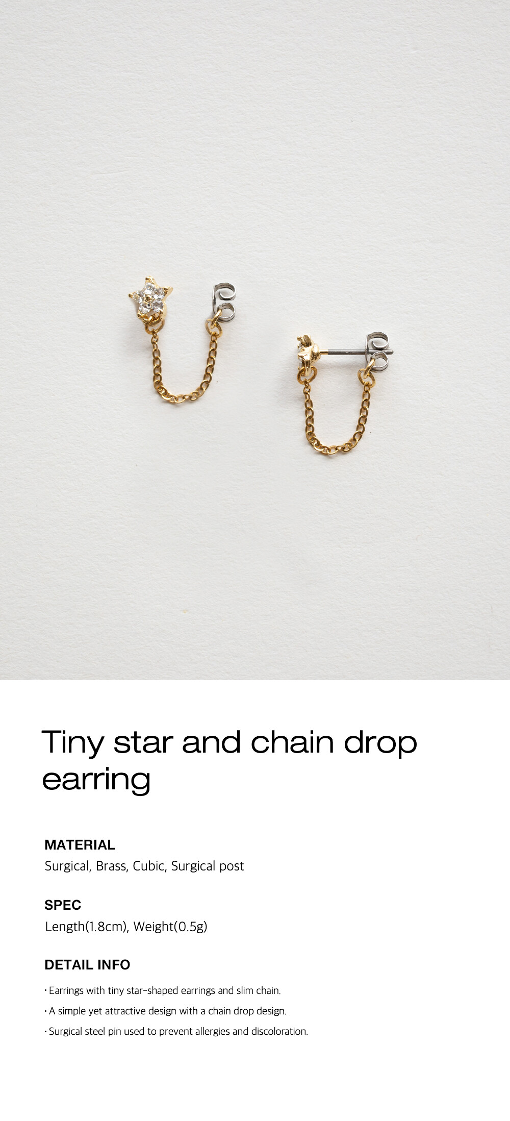 Tiny star and chain drop earring