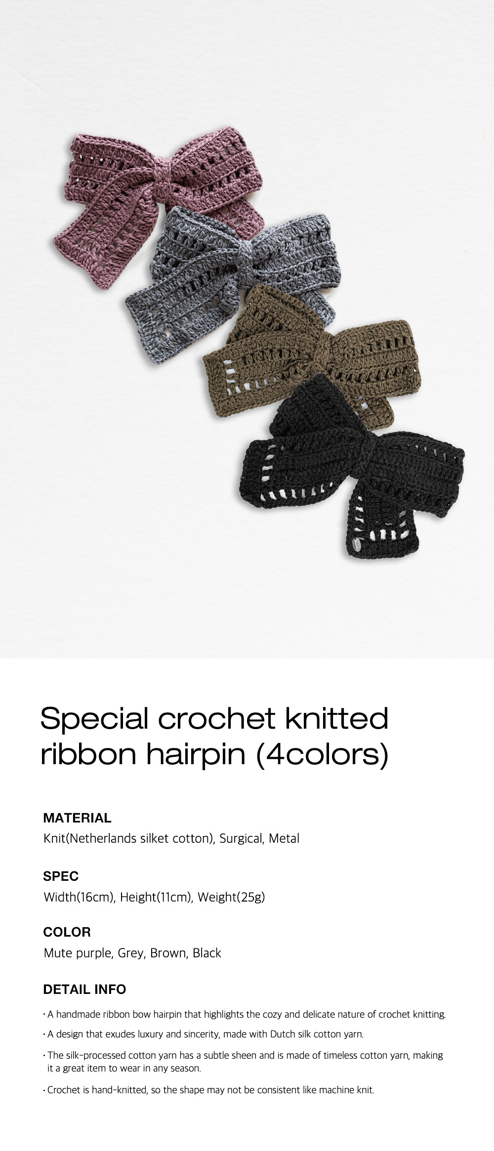 Special crochet knitted ribbon hairpin (4colors)