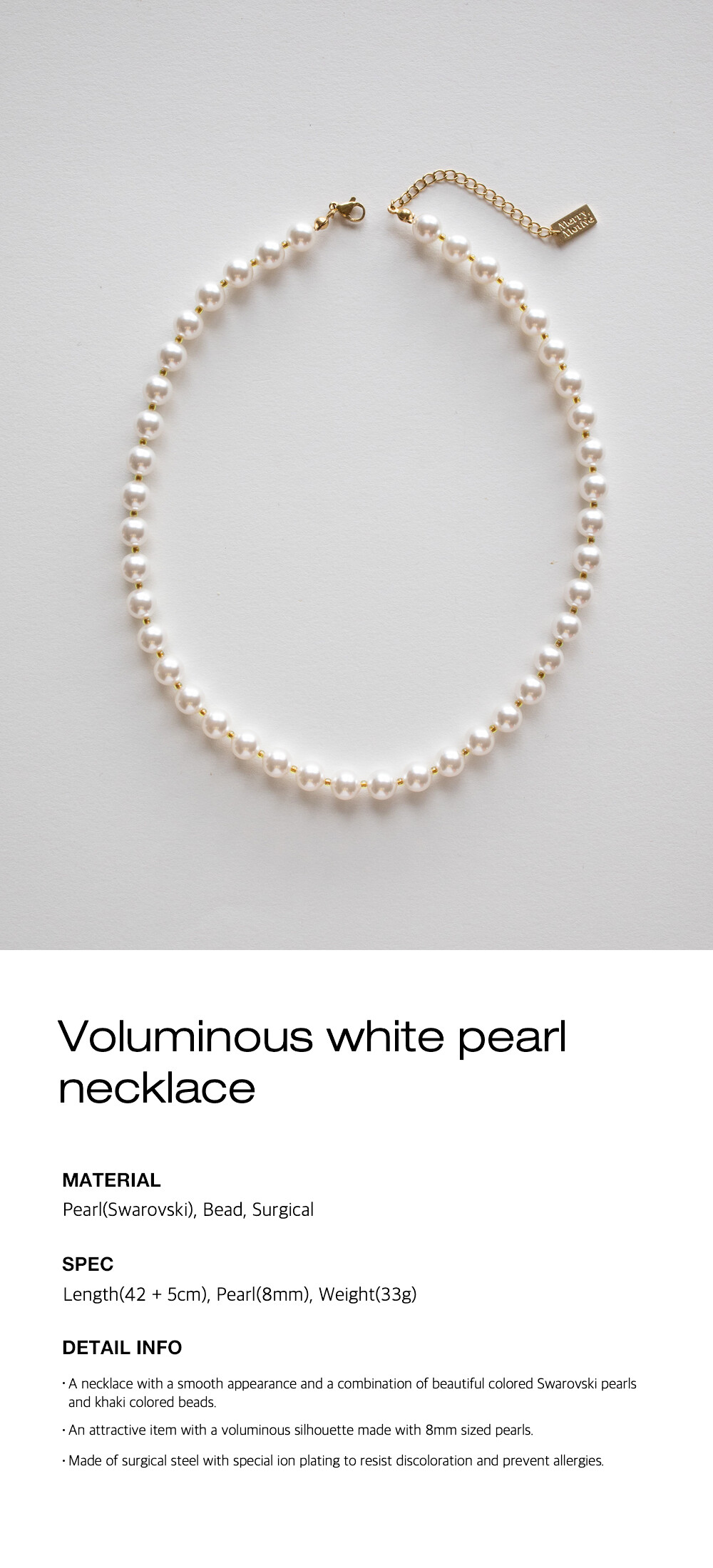 Voluminous white pearl necklace