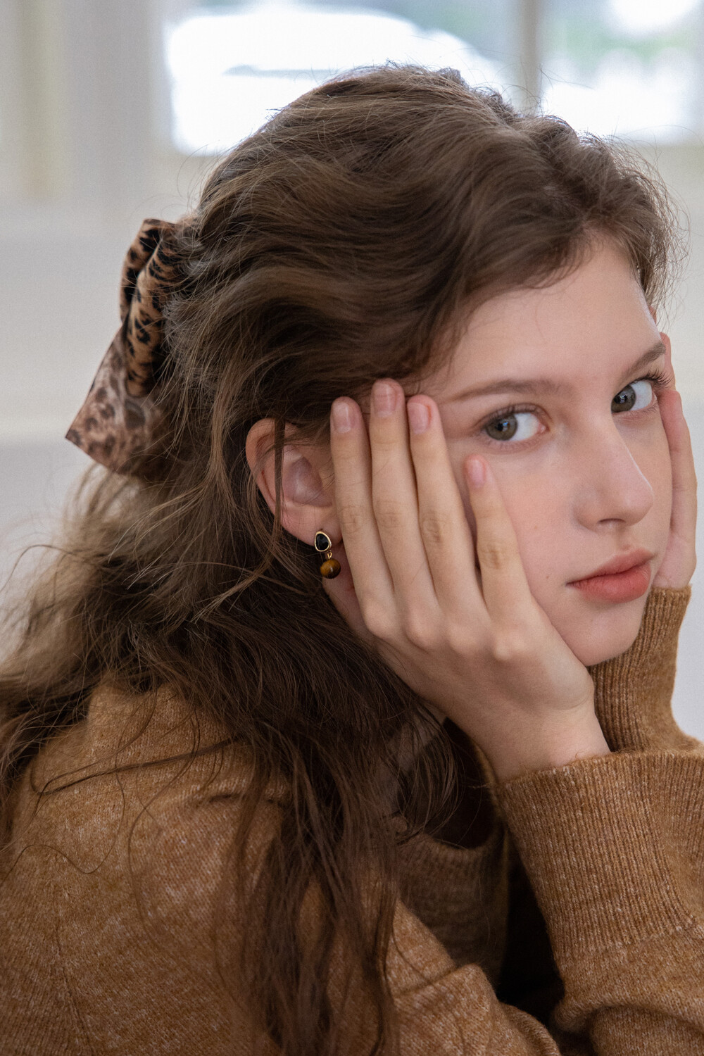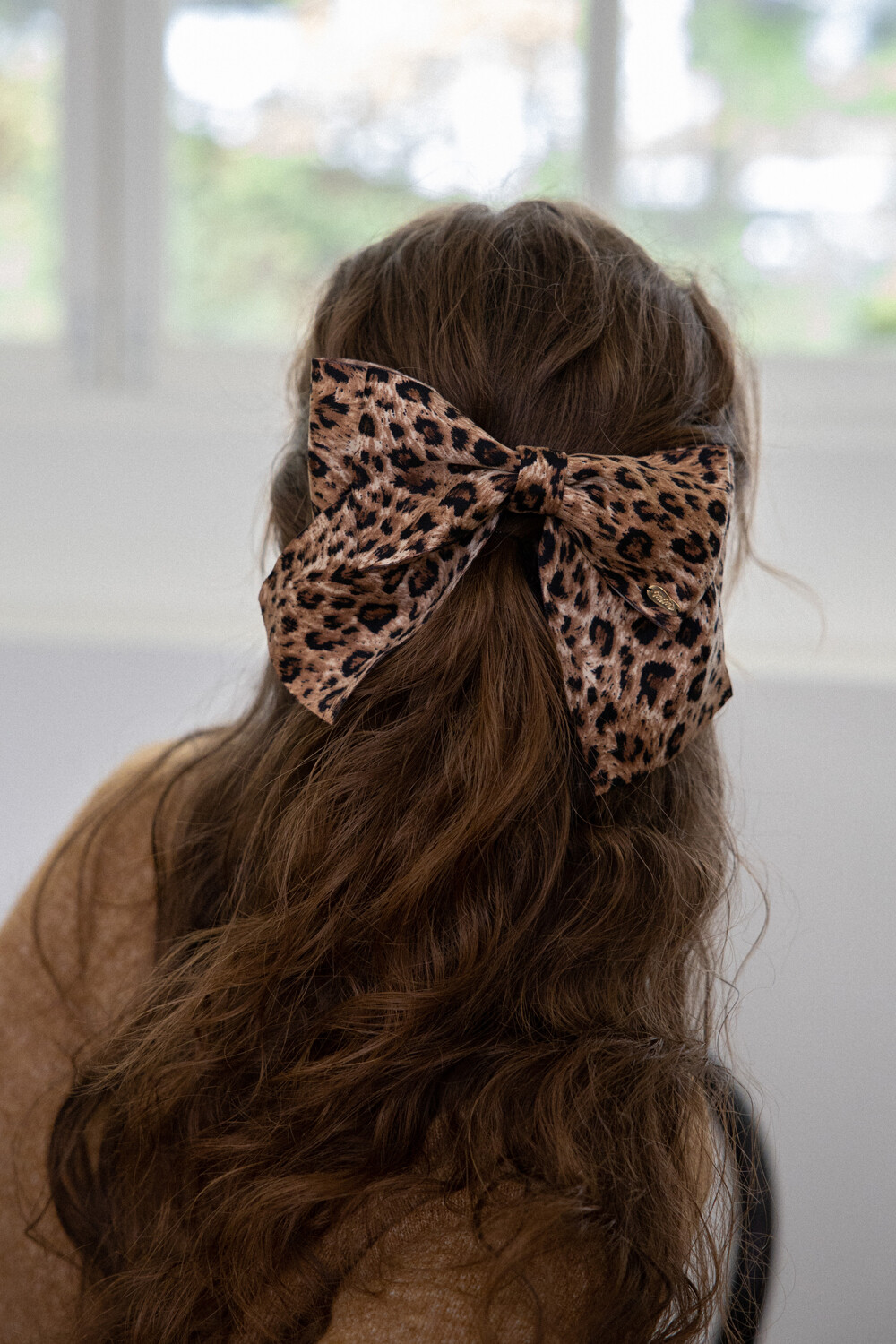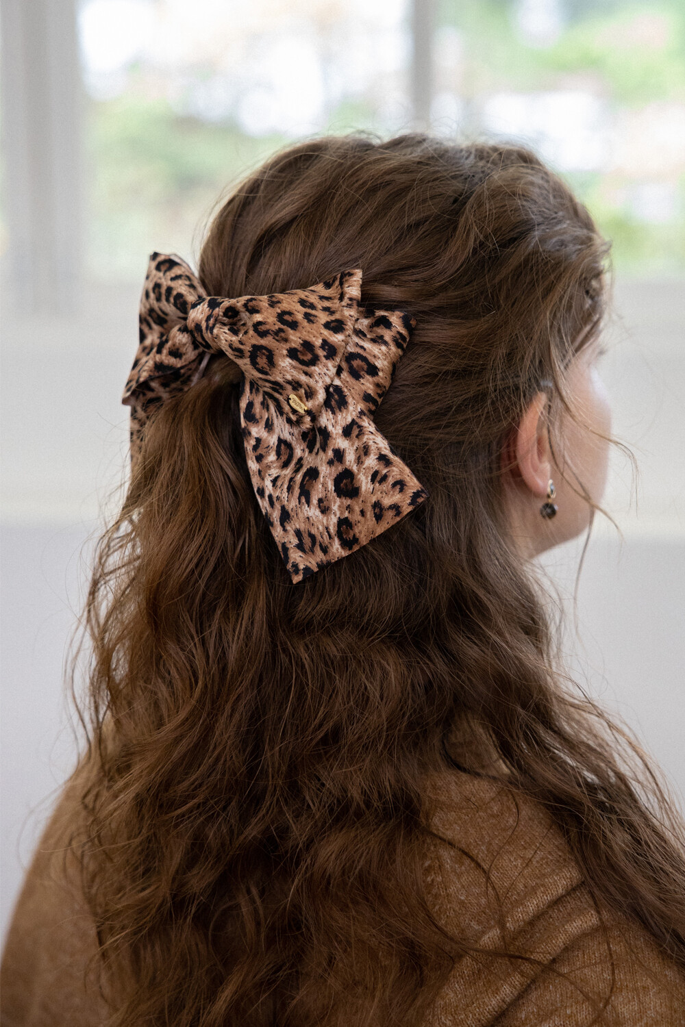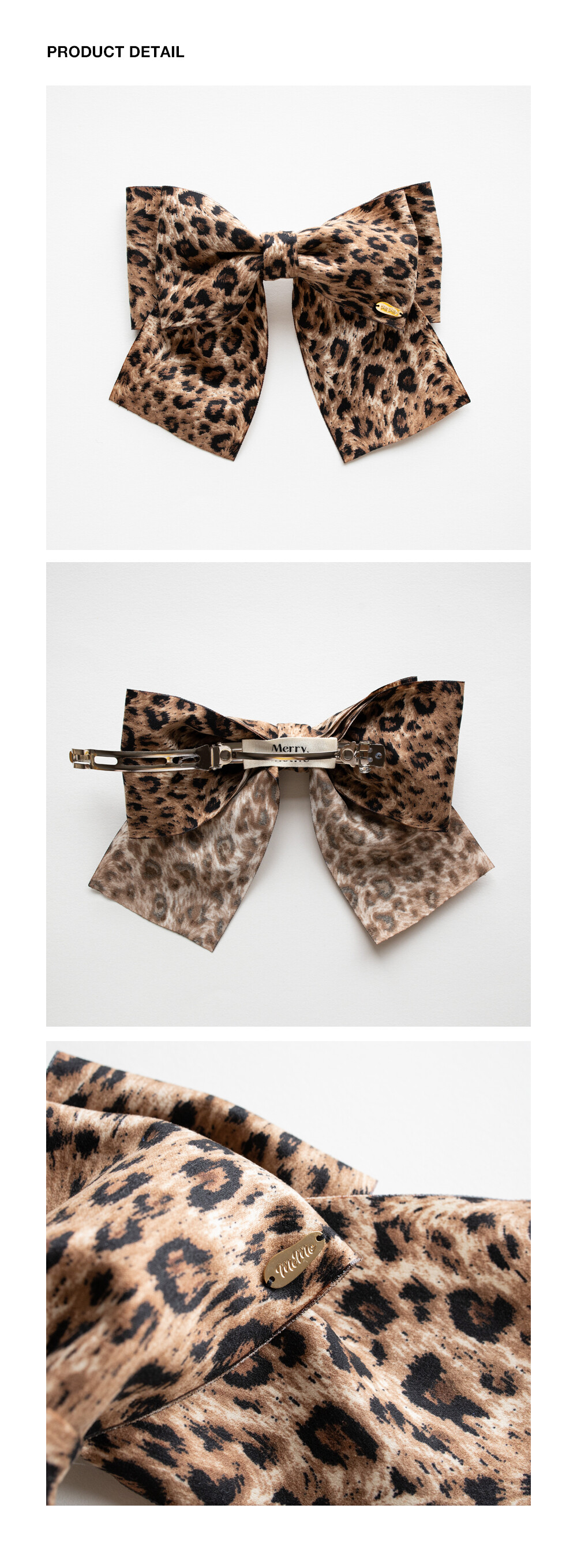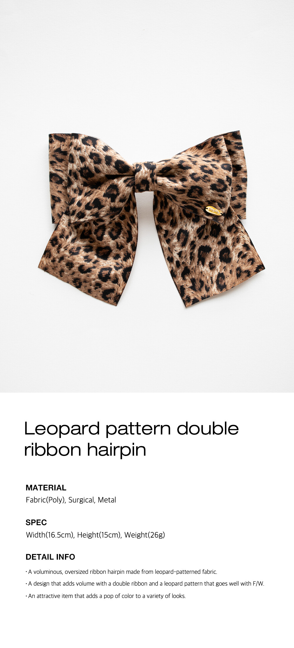 Leopard pattern double ribbon hairpin