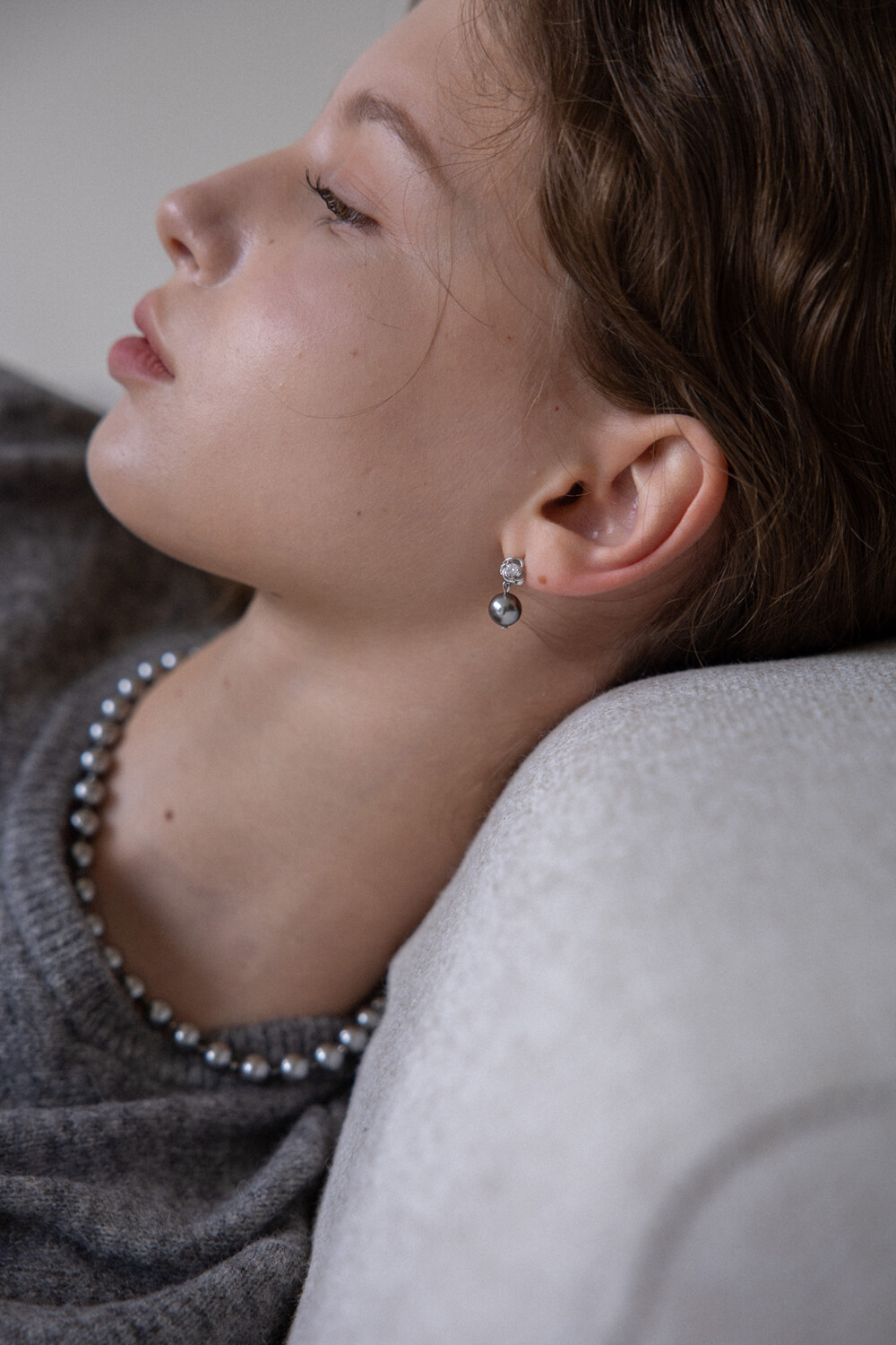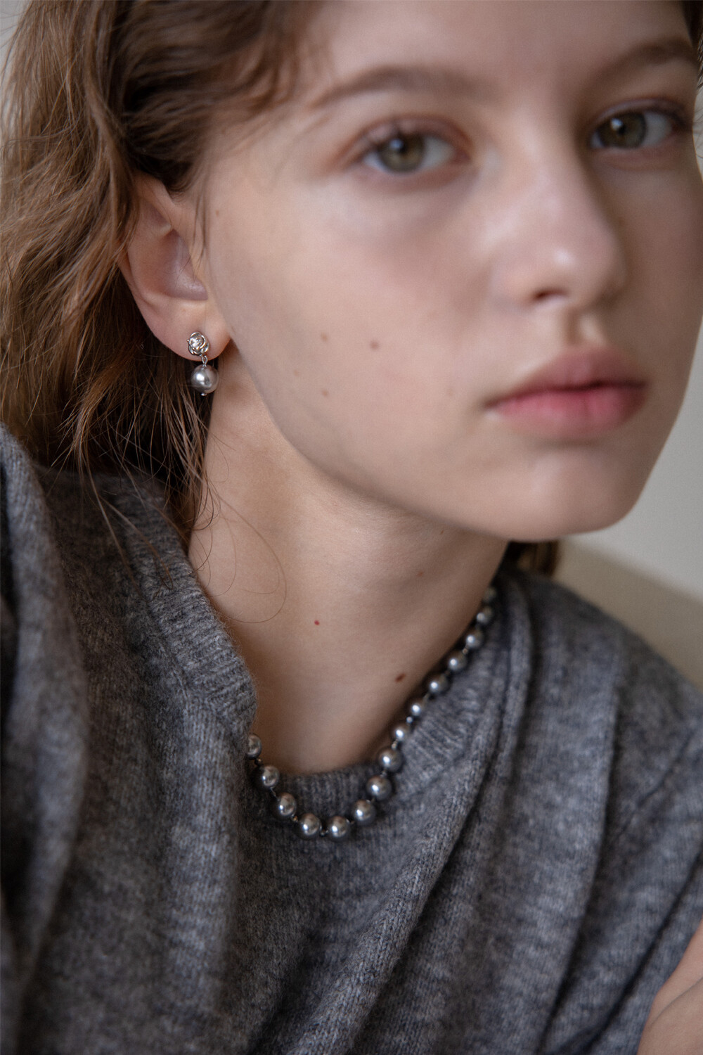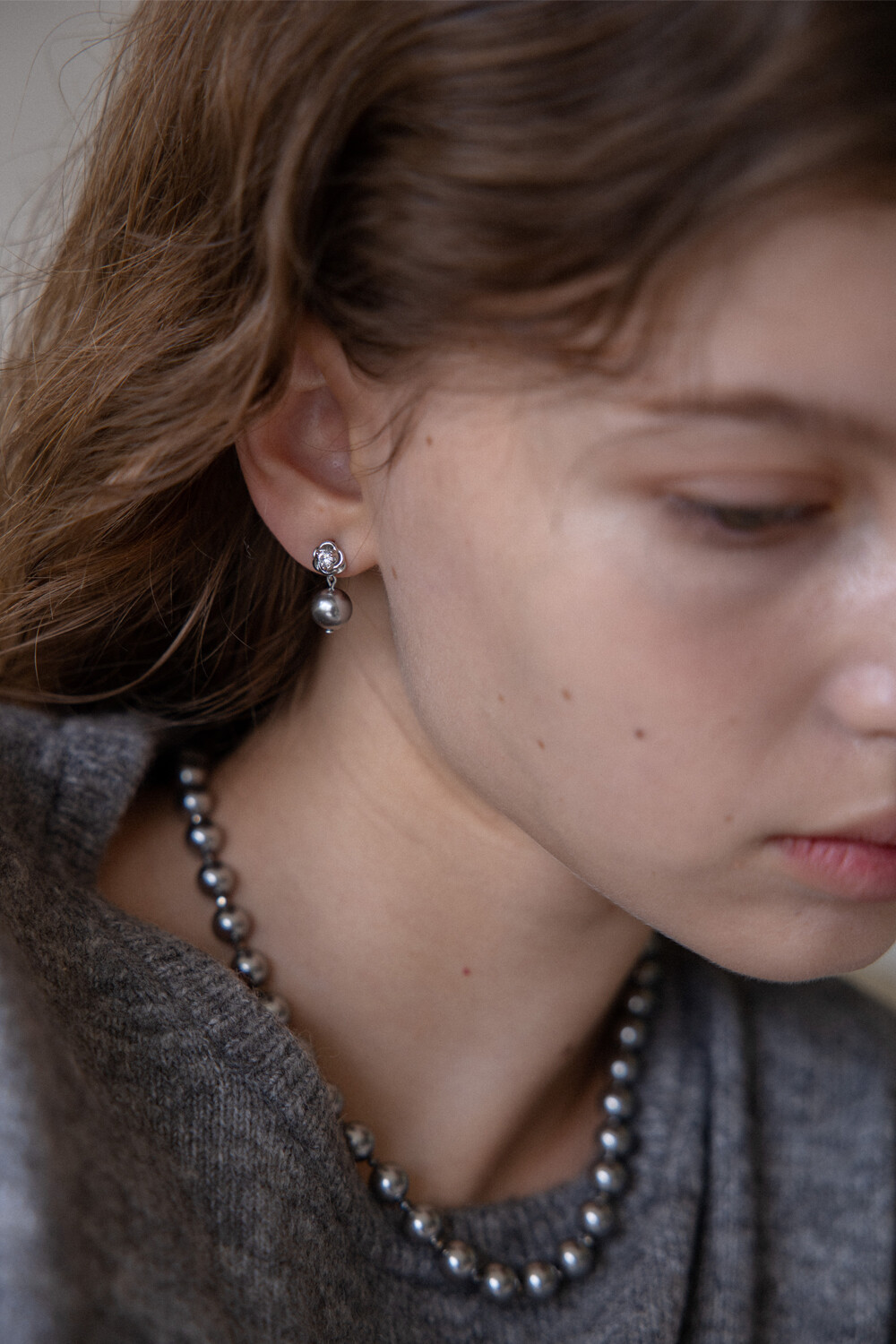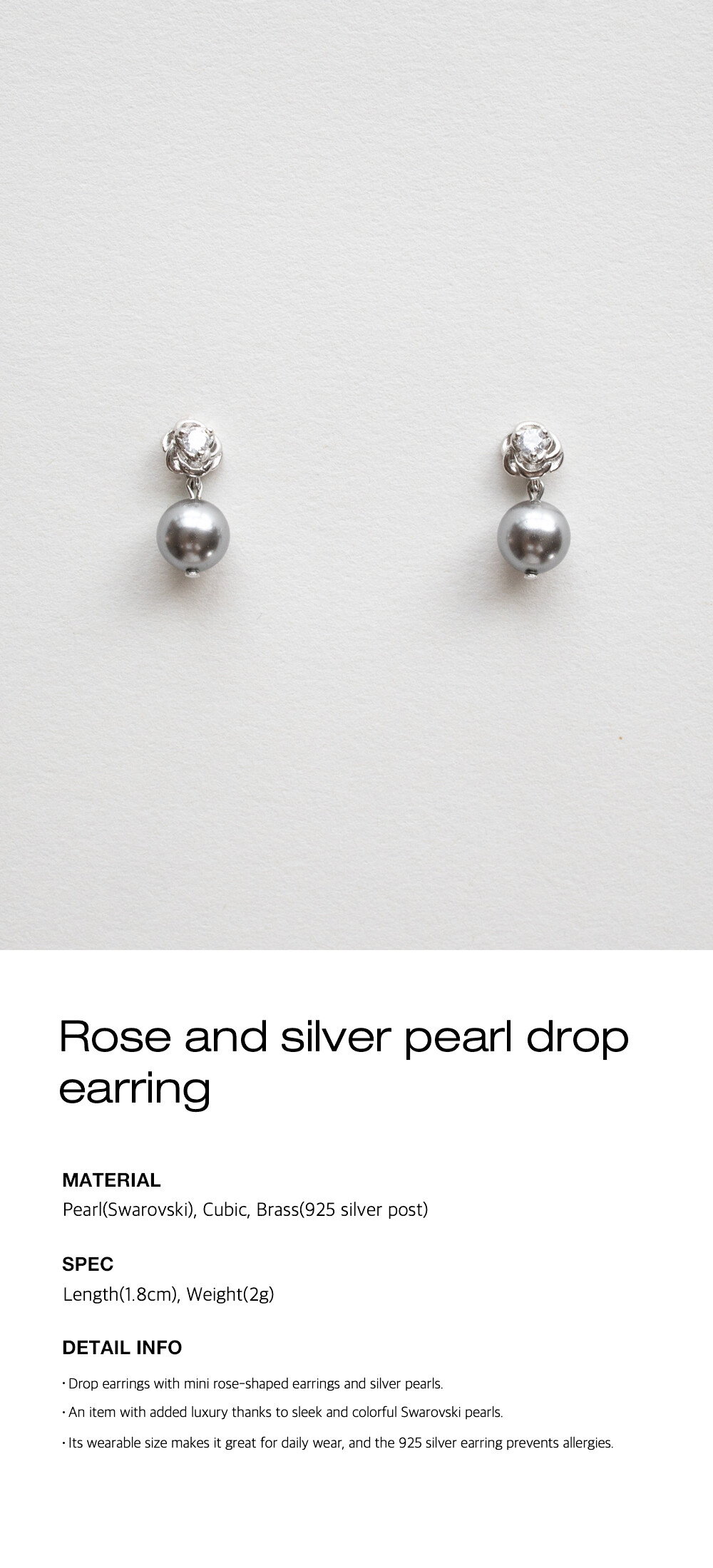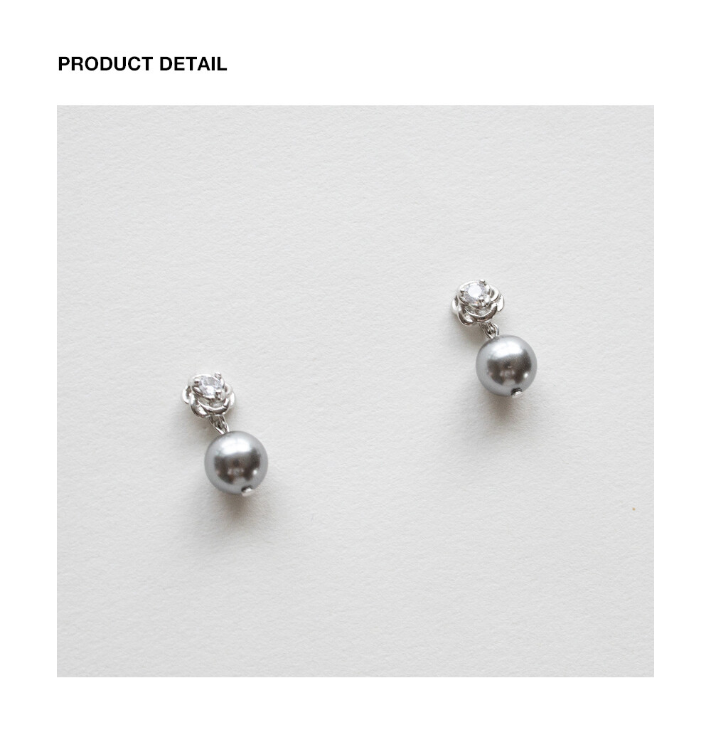 Rose and silver pearl drop earring