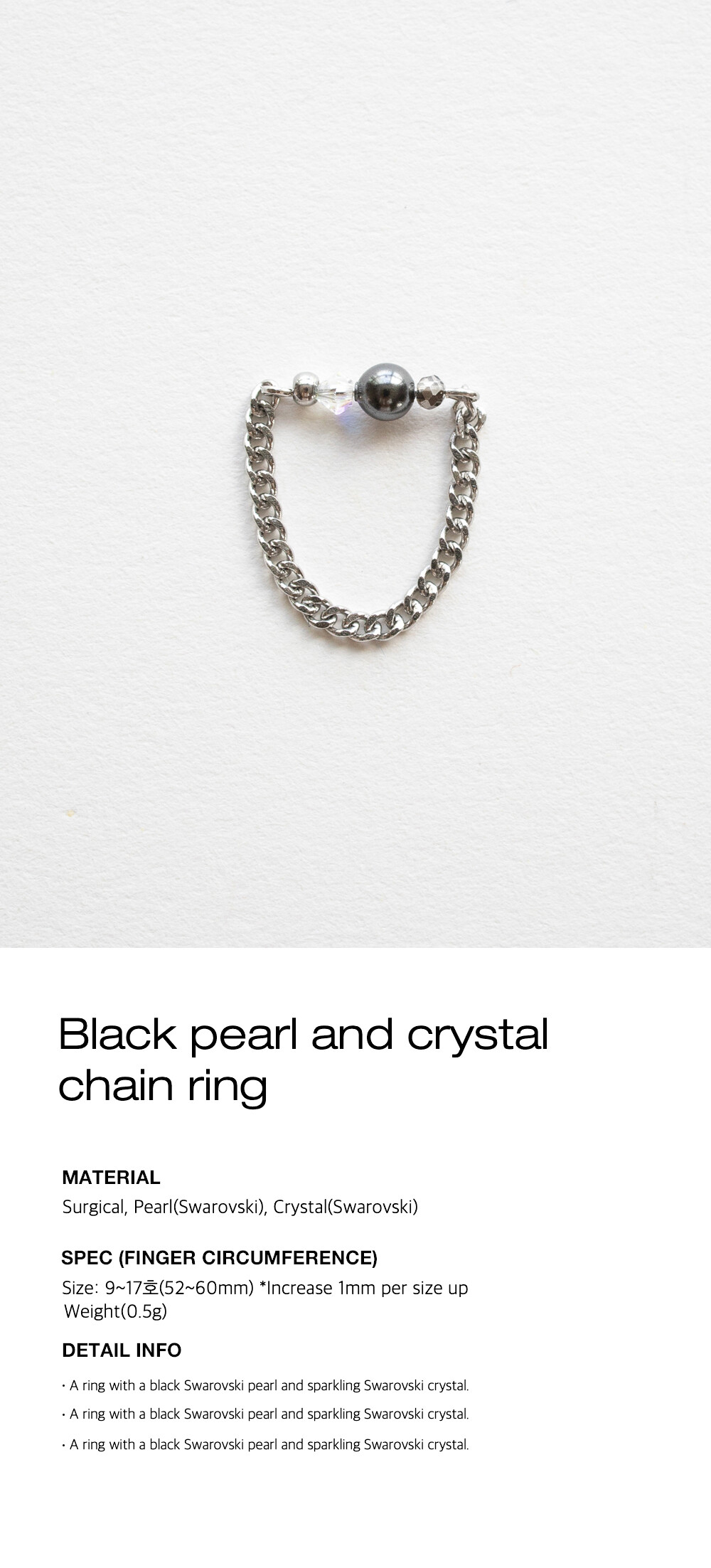 Black pearl and crystal chain ring