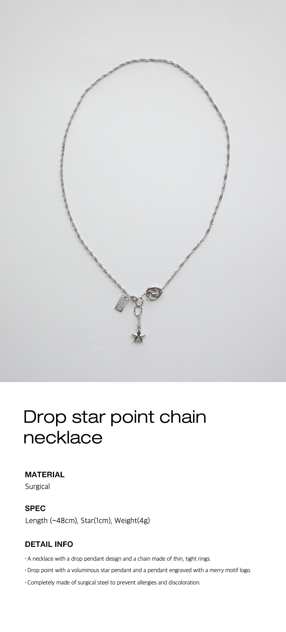 Drop star point chain necklace