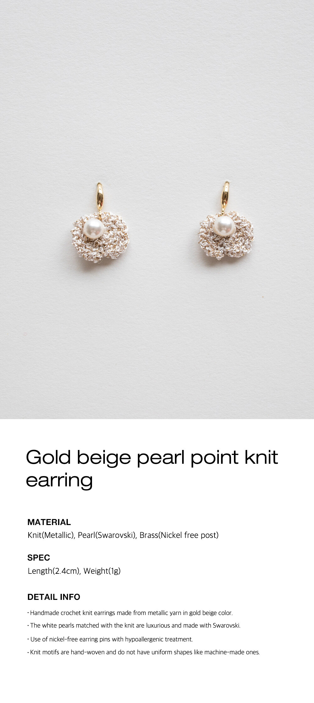 Gold beige pearl point knit earring