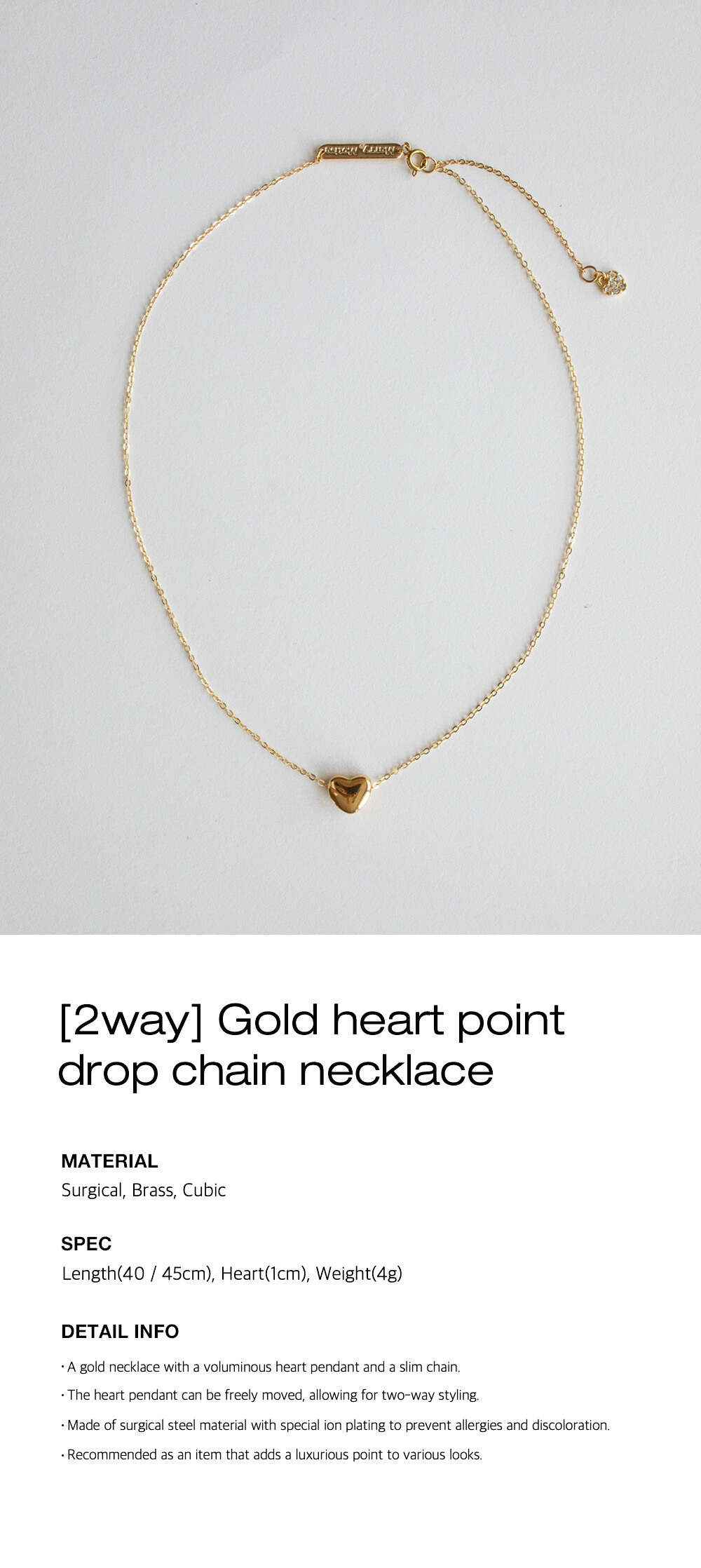 Gold heart point drop chain necklace