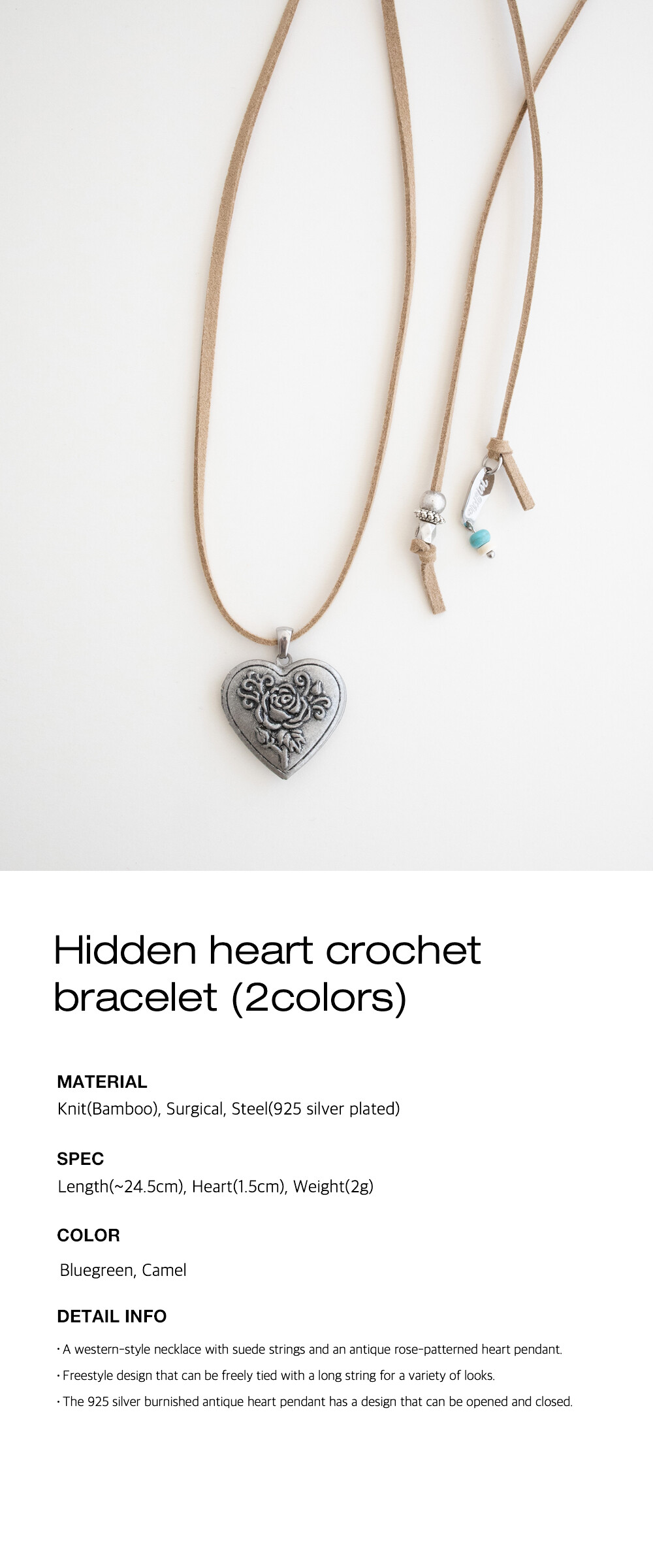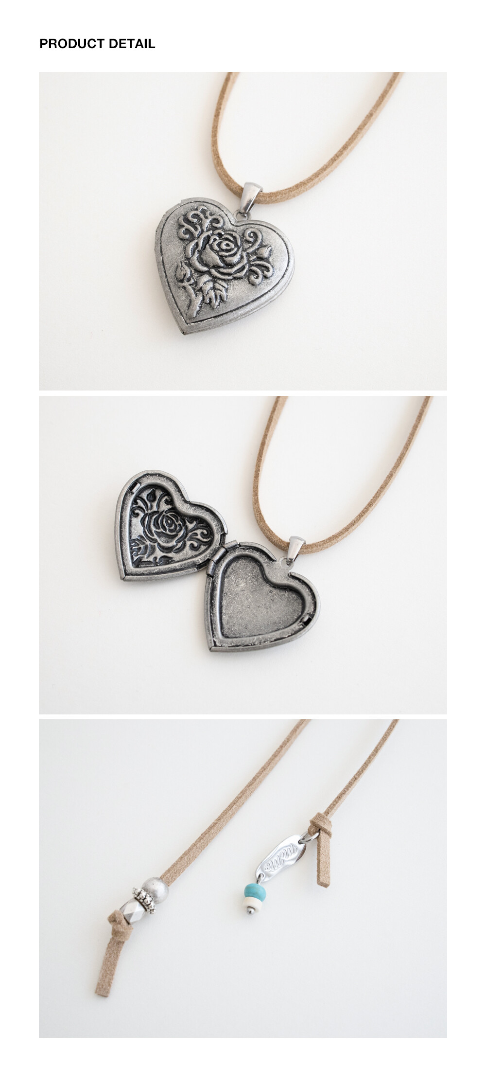 Antique heart pendant with suede necklace