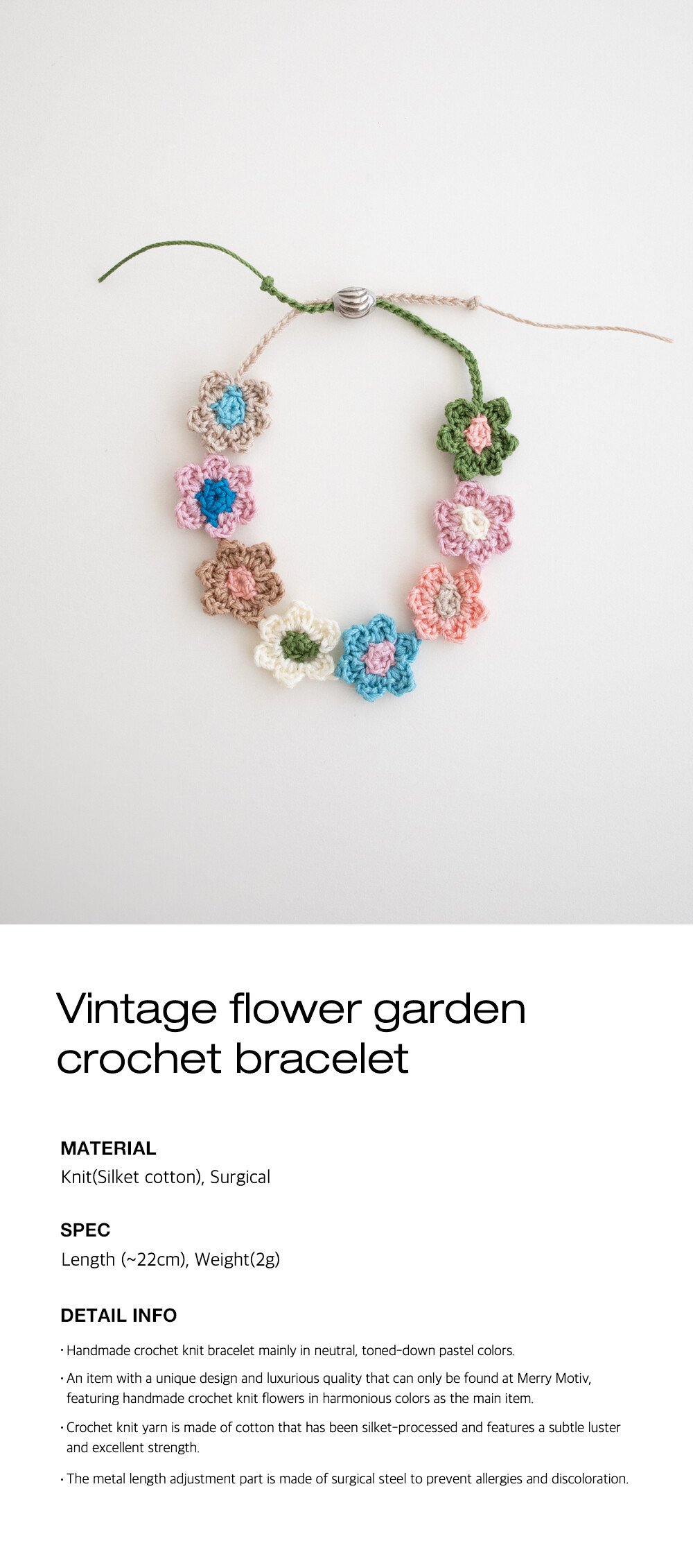 Vintage flower garden crochet bracelet