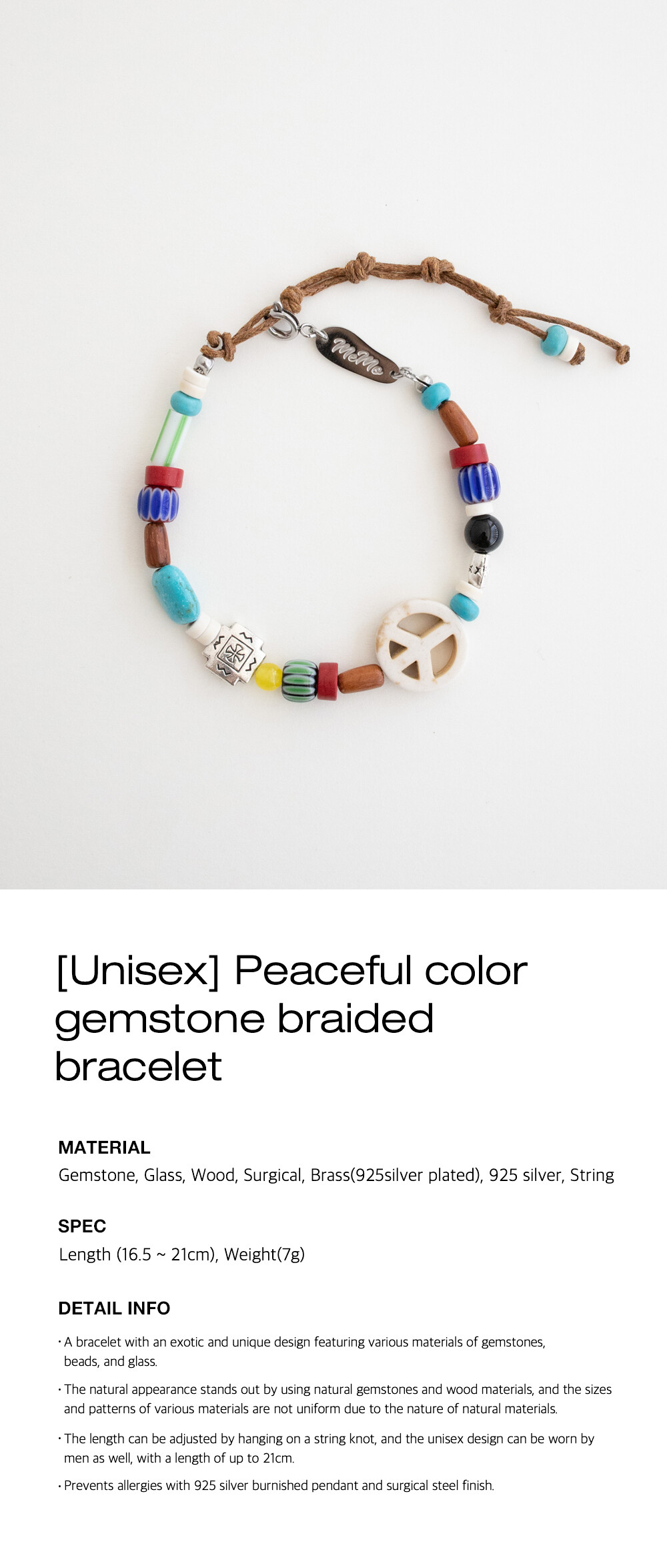 [Unisex] Peaceful color gemstone braided bracelet