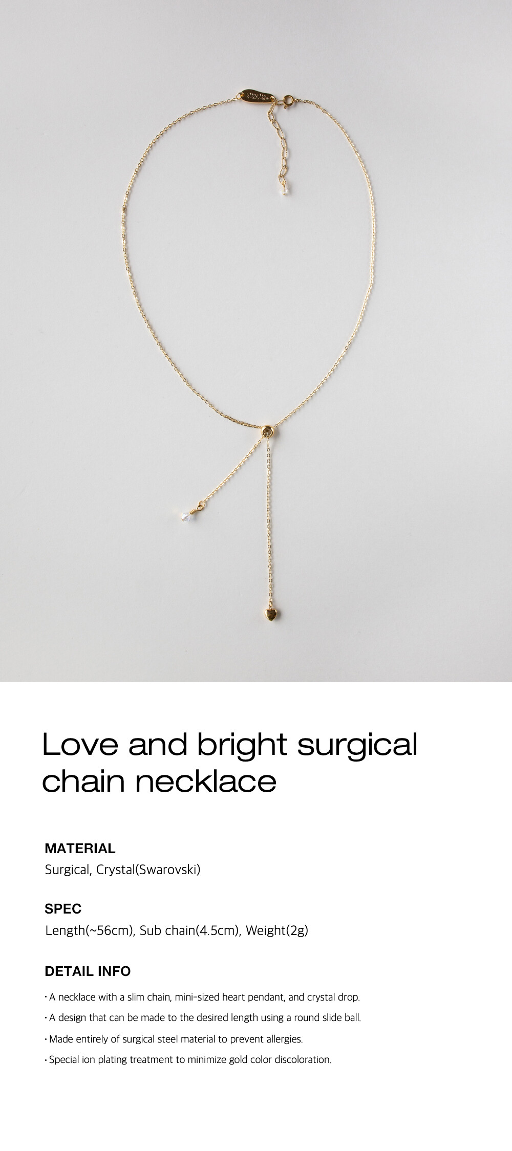 Love and bright surgical chain necklace