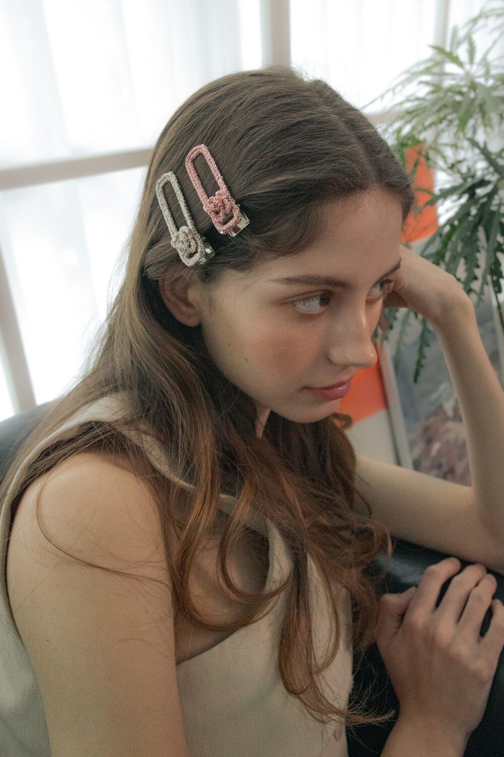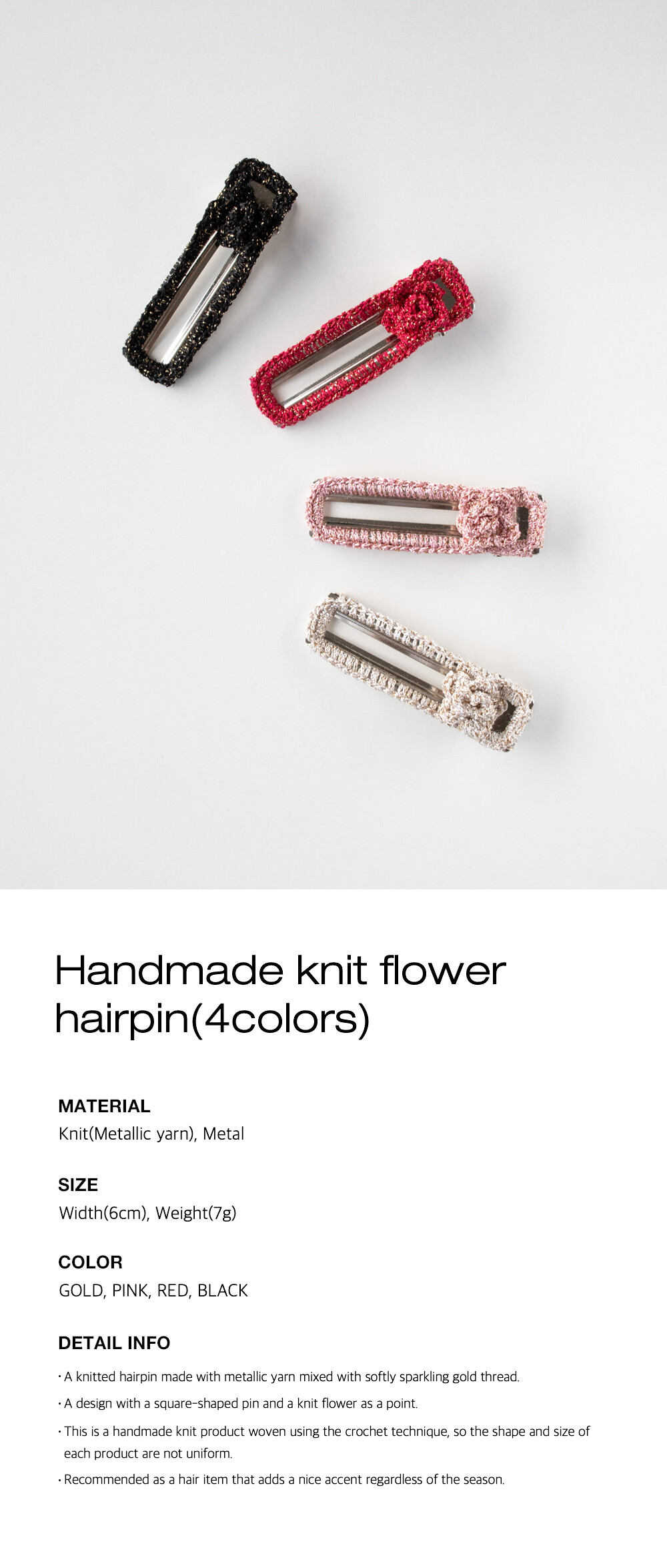 Handmade knit flower hairpin (4color)