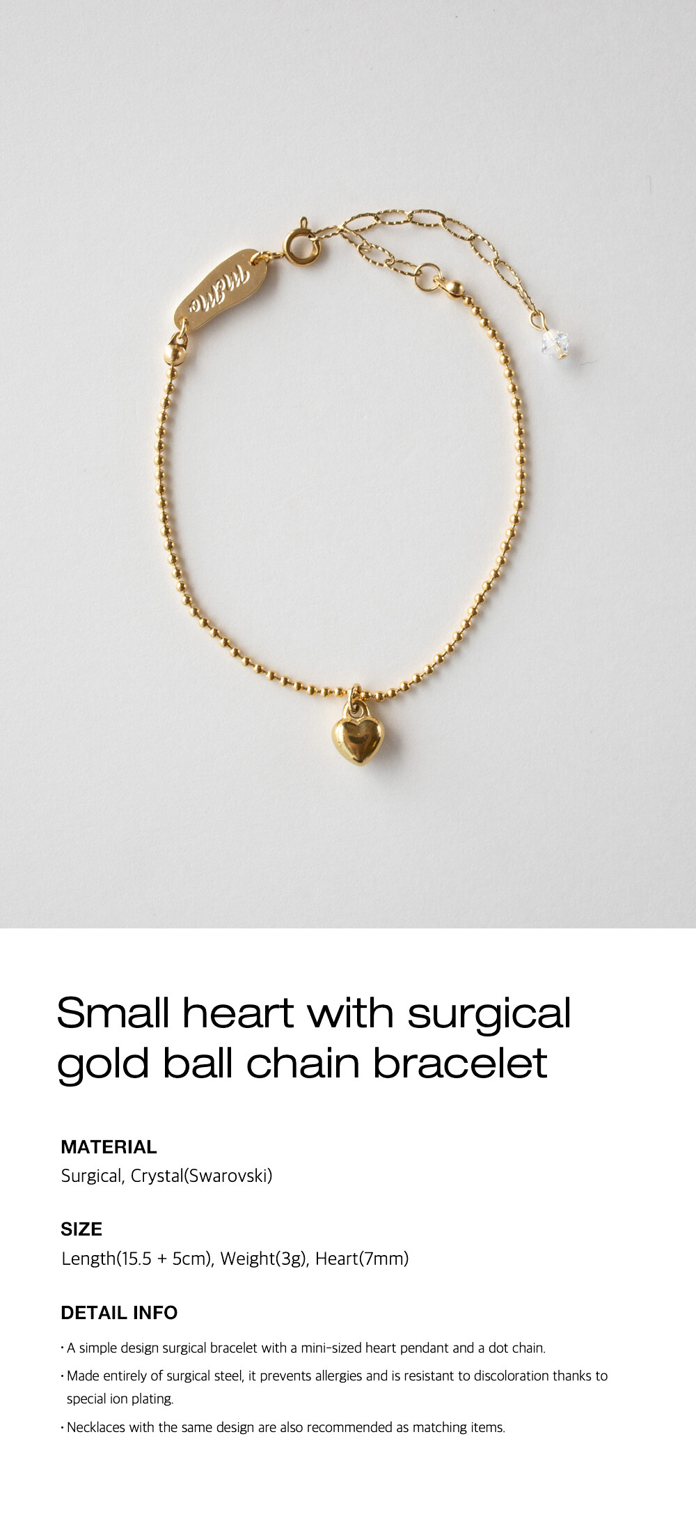 Small heart with surgical gold ball chain bracelet