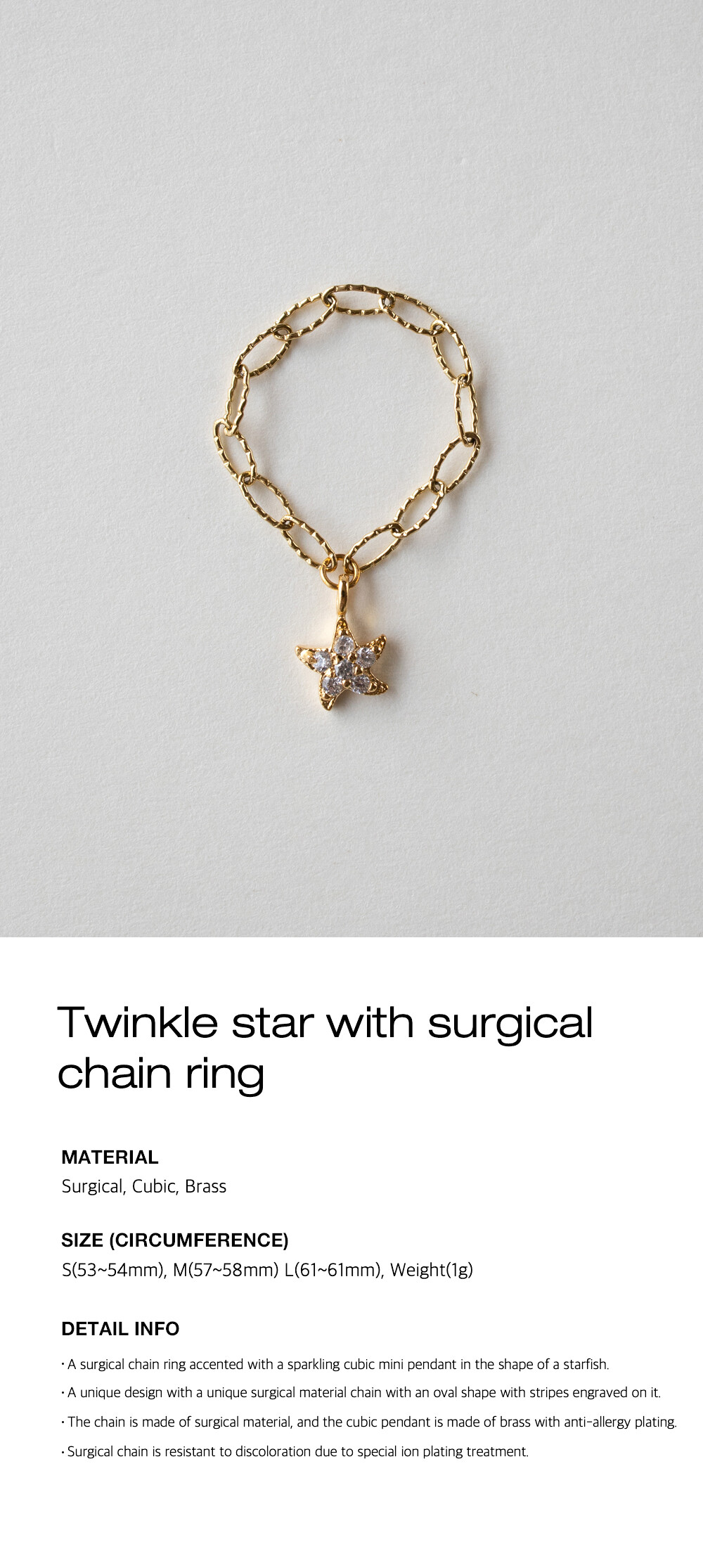 Twinkle star with surgical chain ring