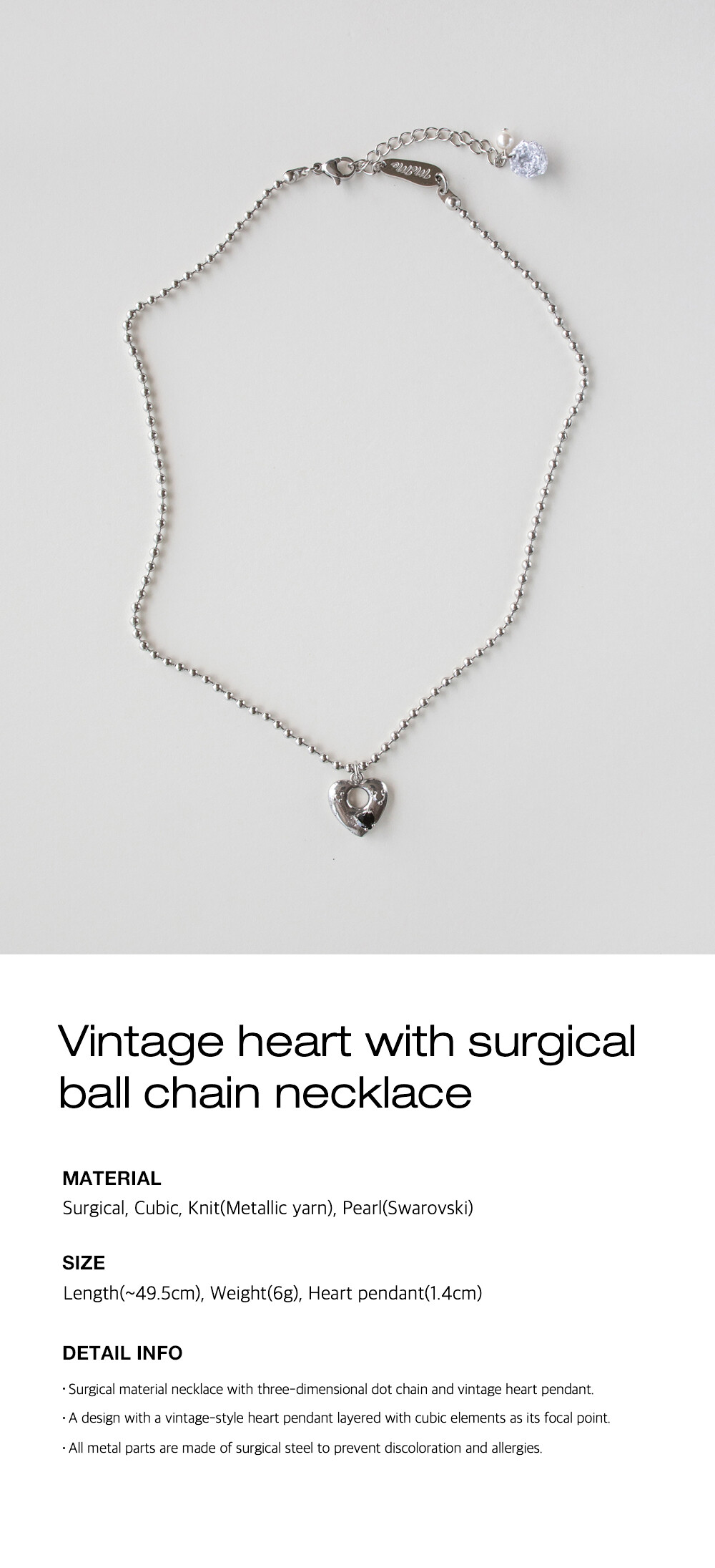 Vintage heart with surgical ball chain necklace