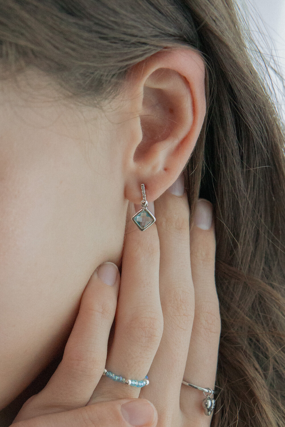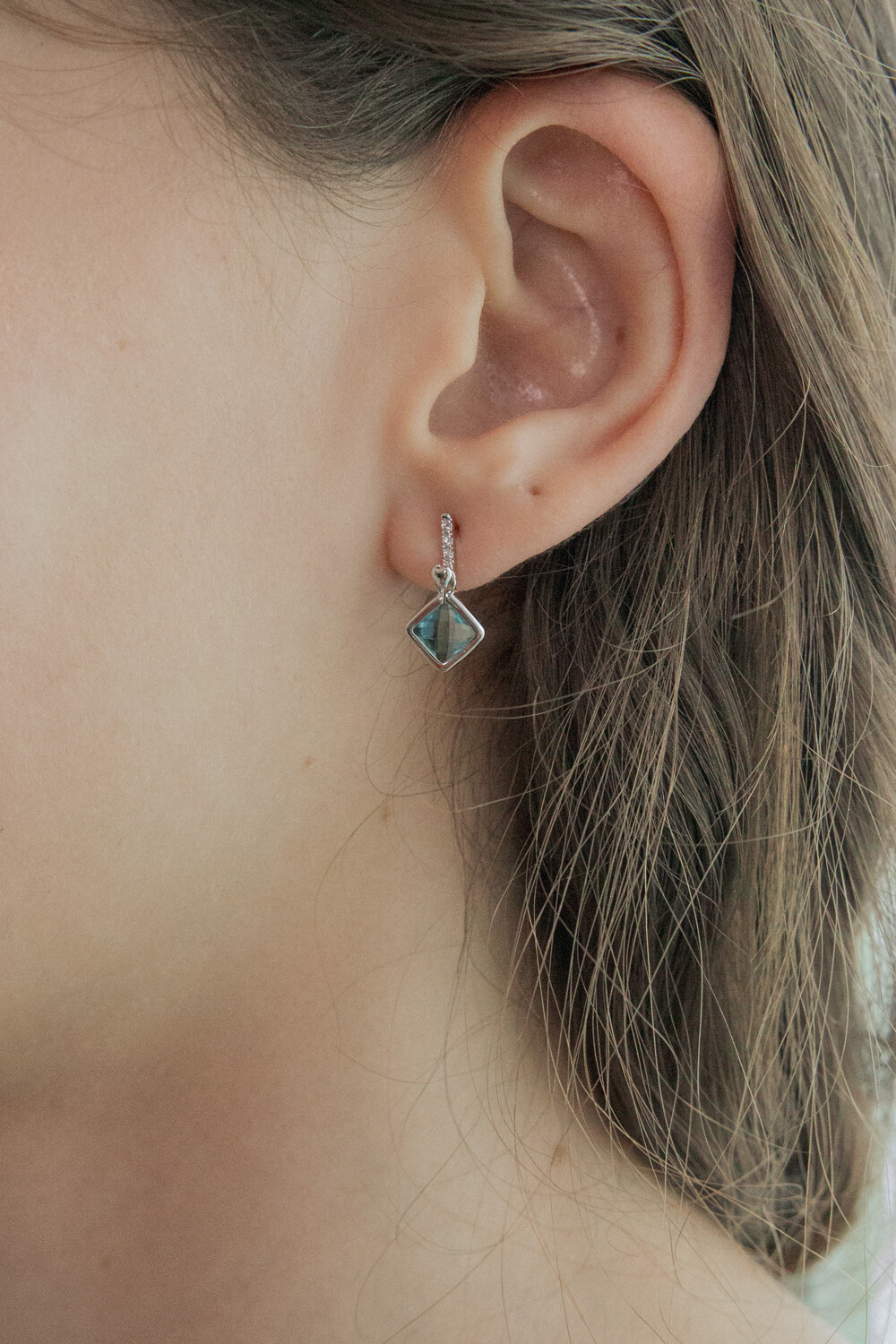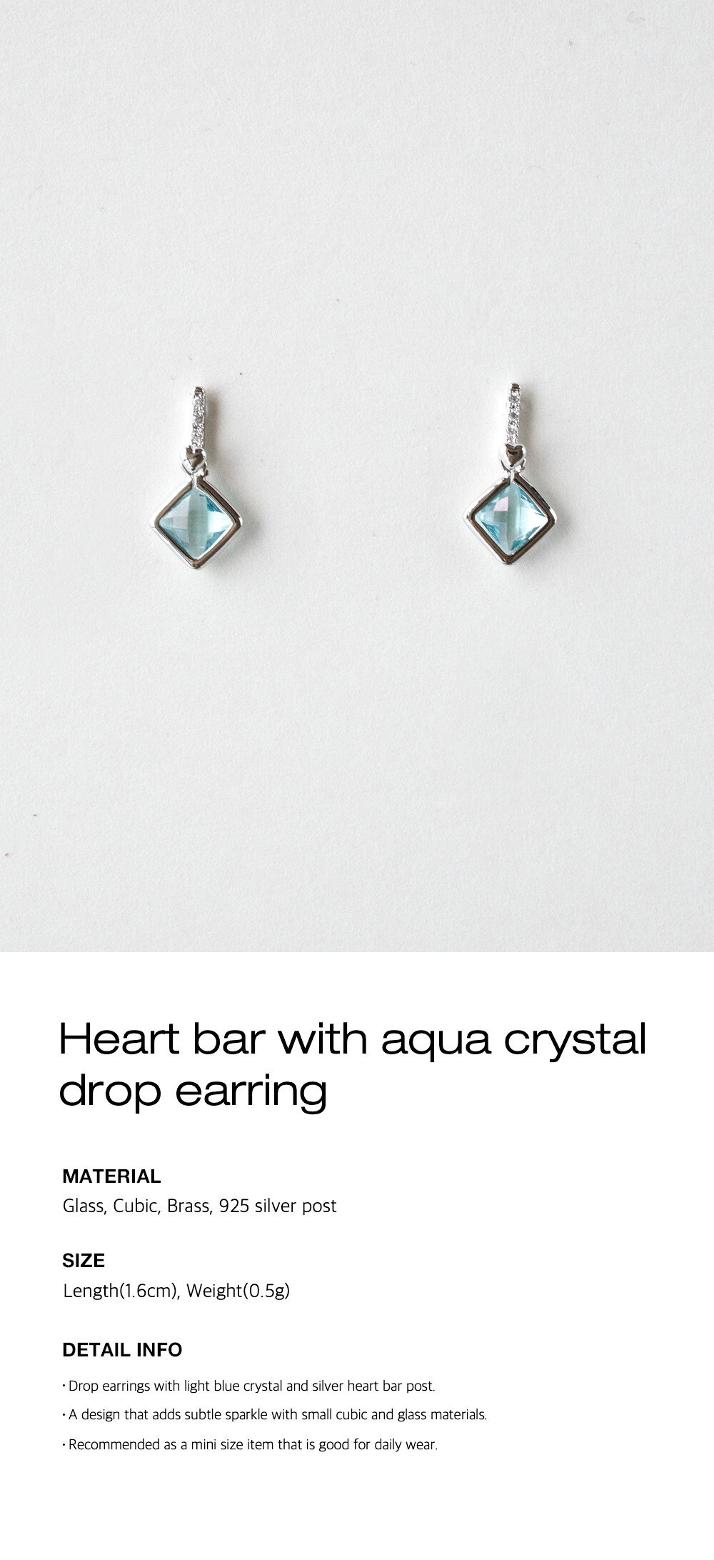 Heart bar with aqua crystal drop earring
