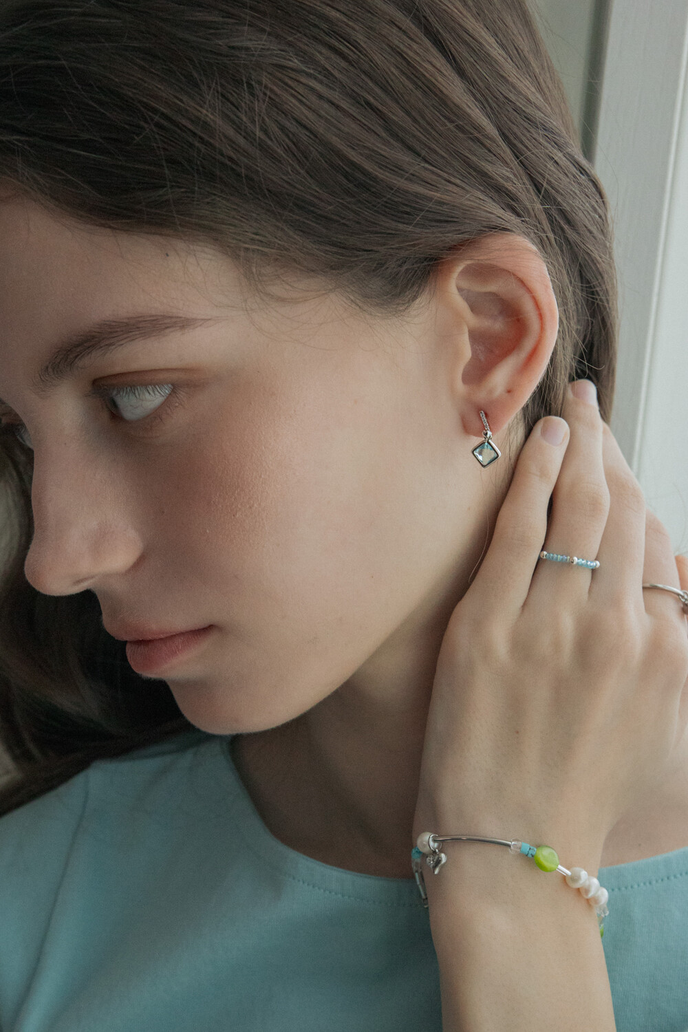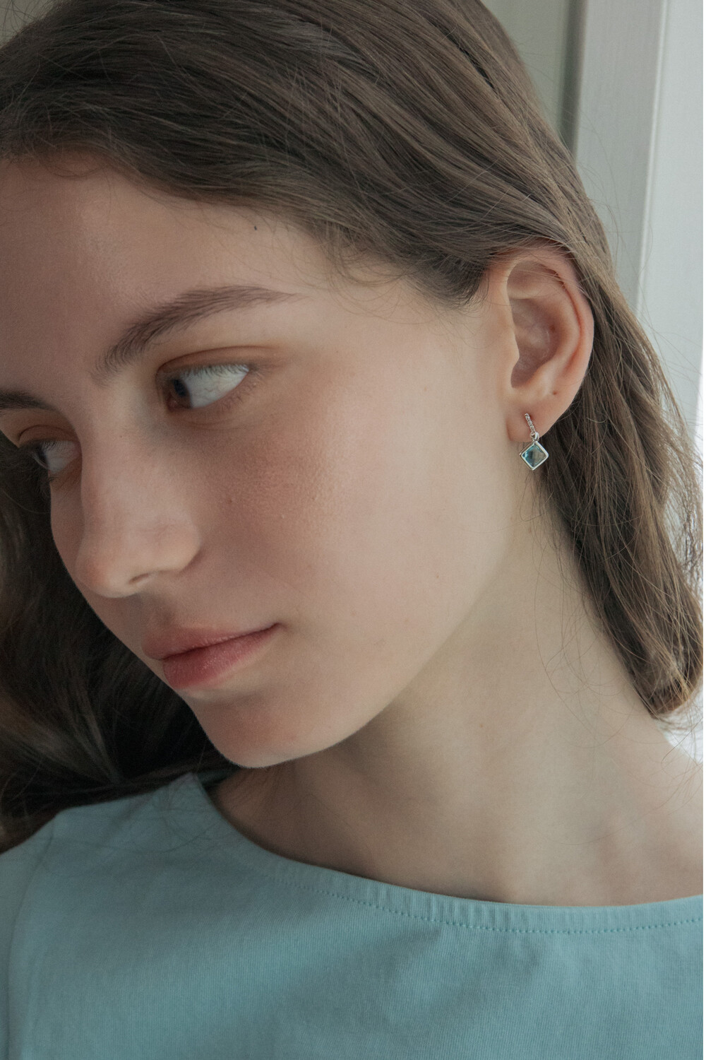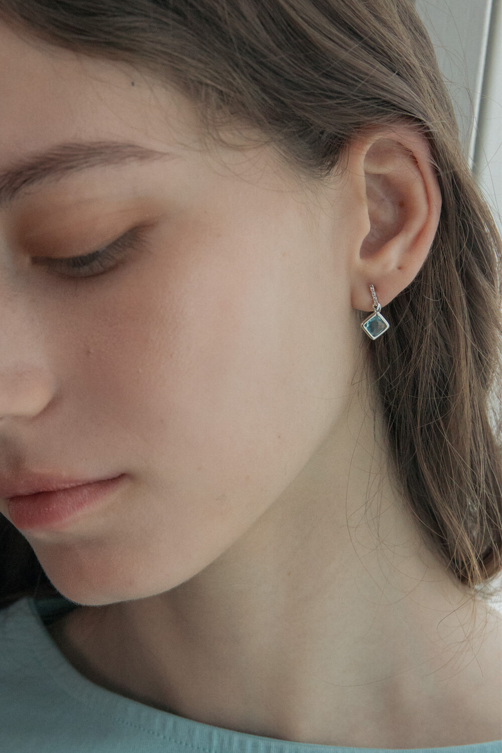 Heart bar with aqua crystal drop earring