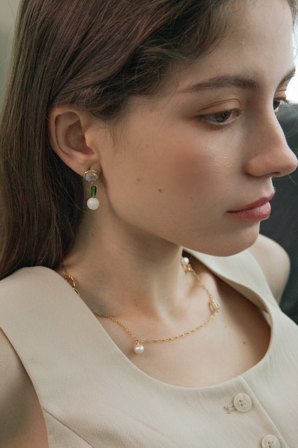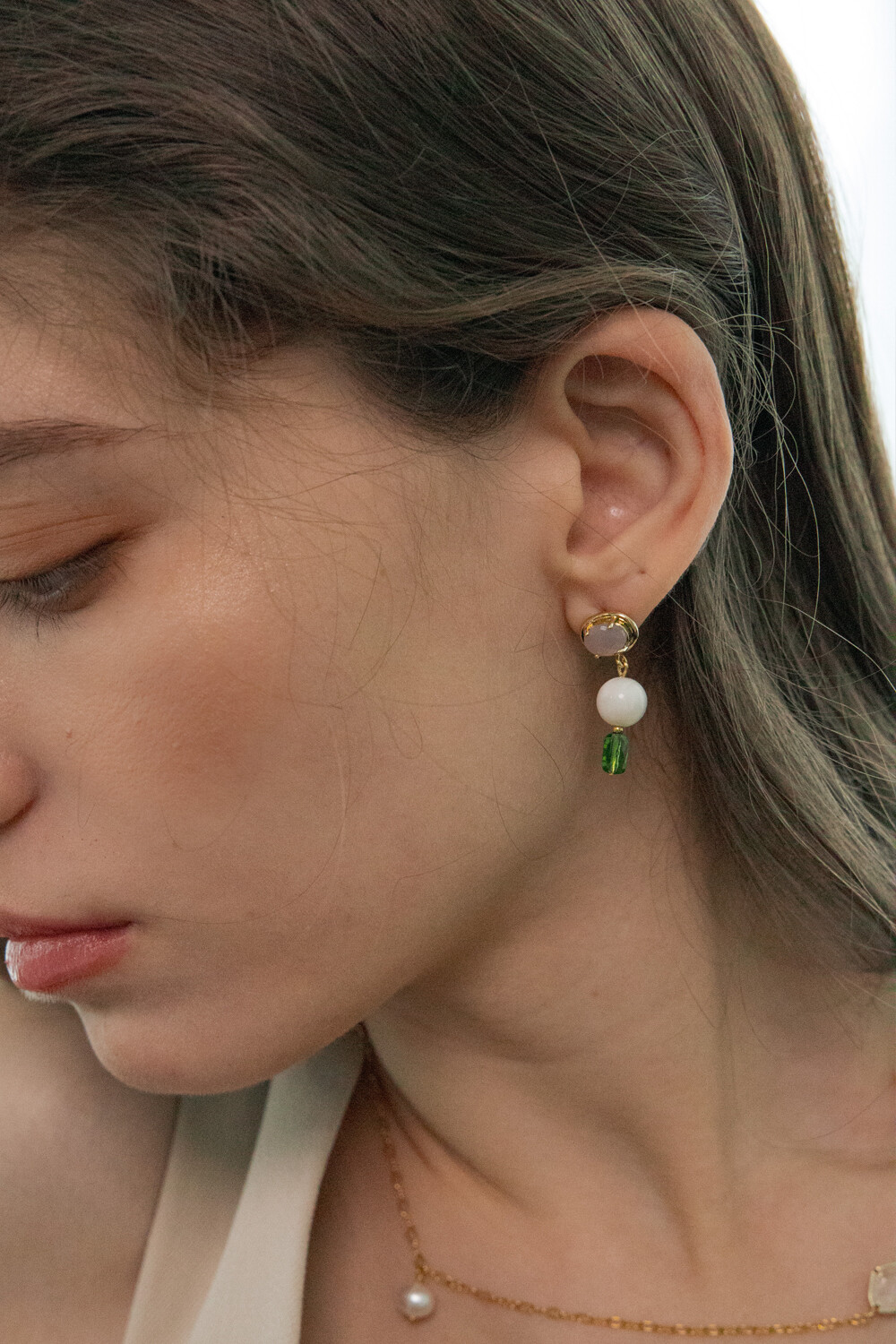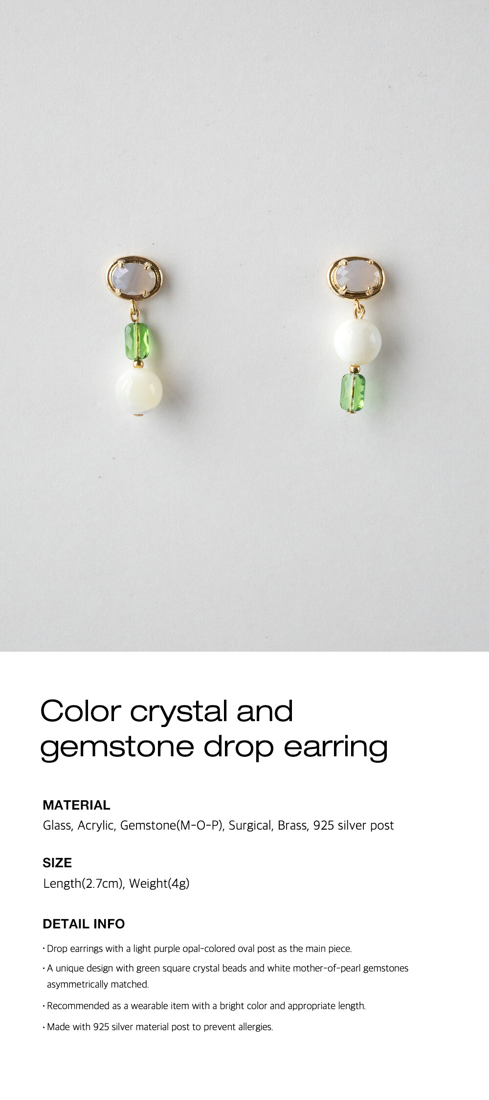 Color crystal and gemstone drop earring