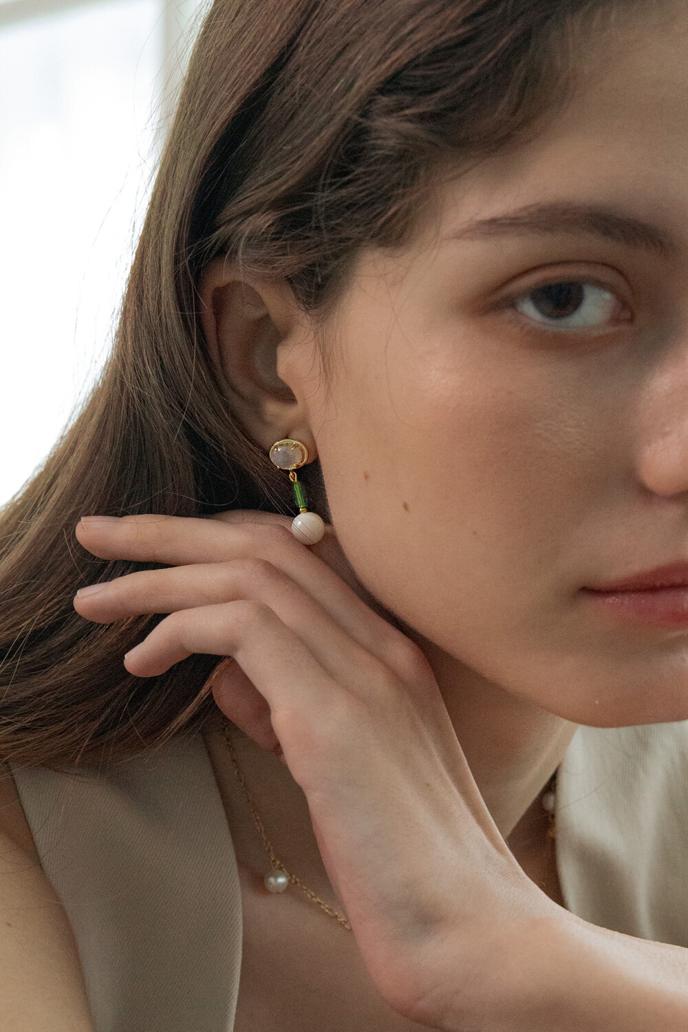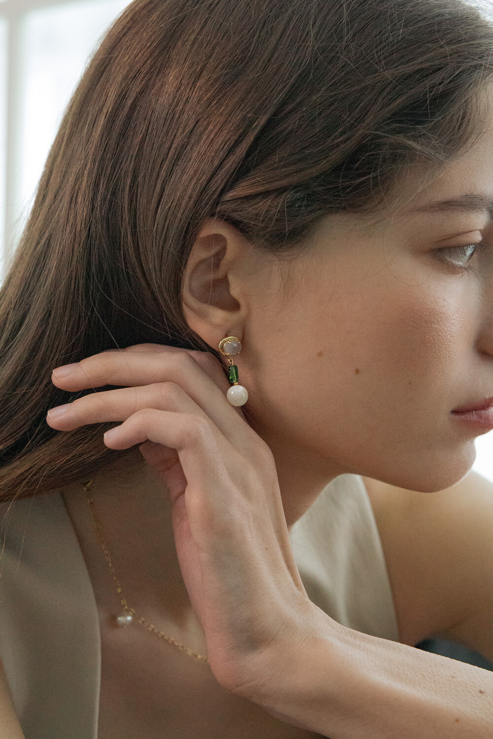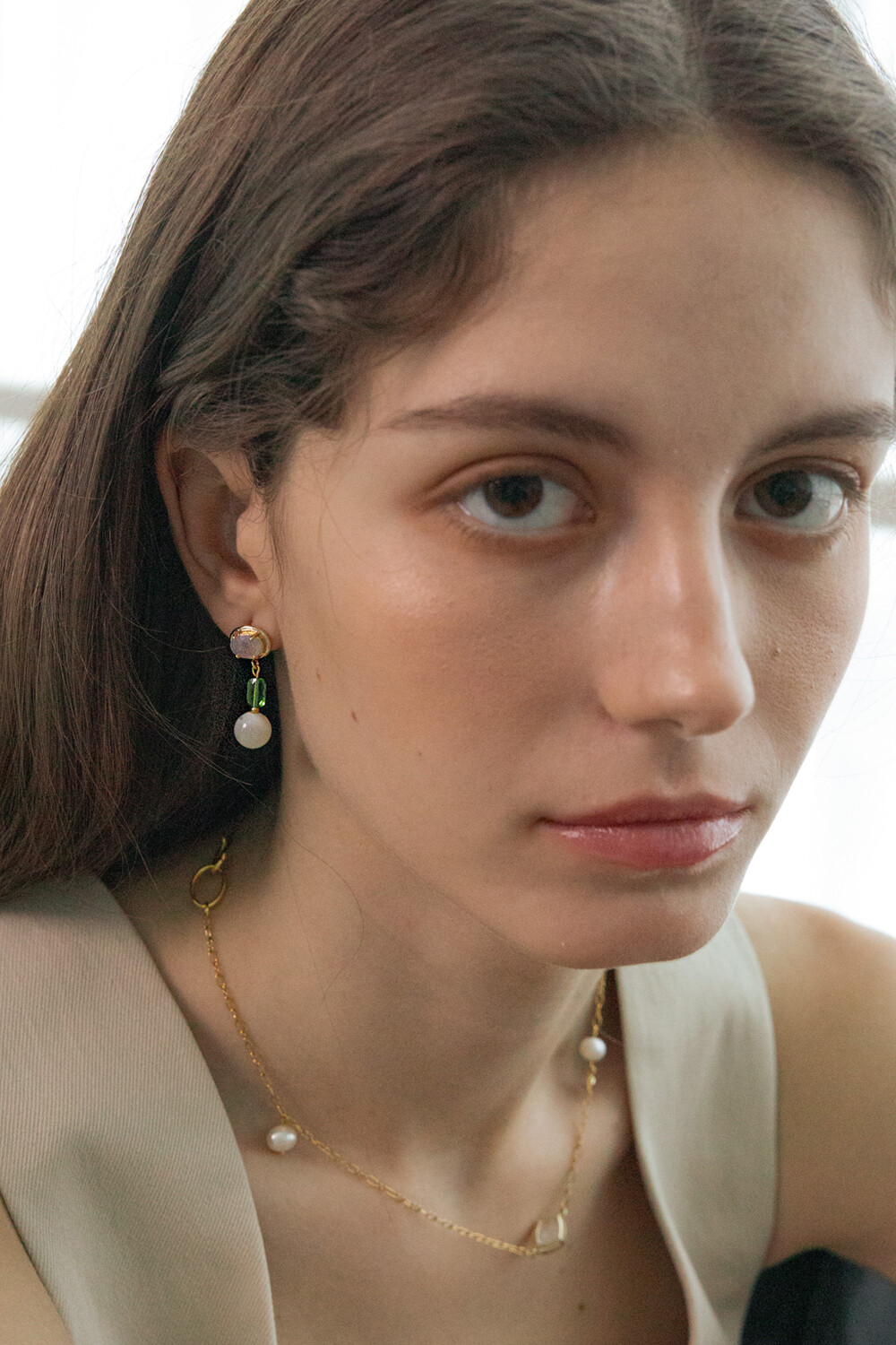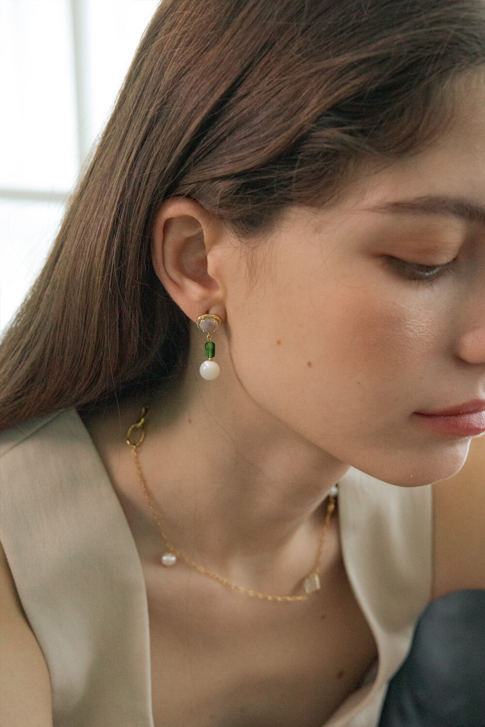 Color crystal and gemstone drop earring
