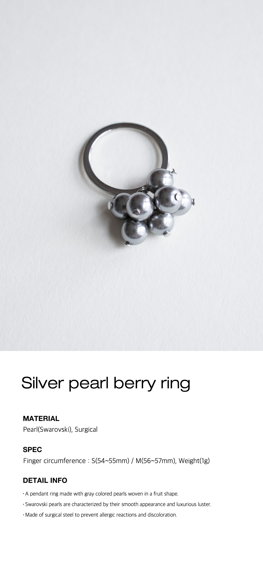 Silver pearl berry ring