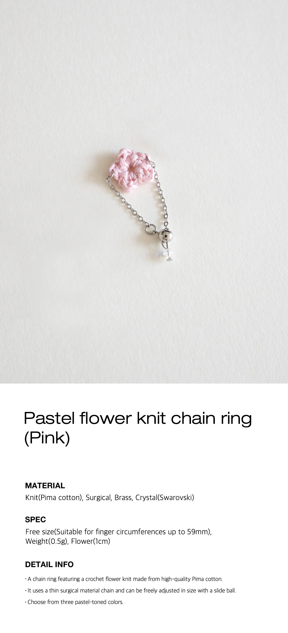 Pastel flower knit chain ring (Pink)
