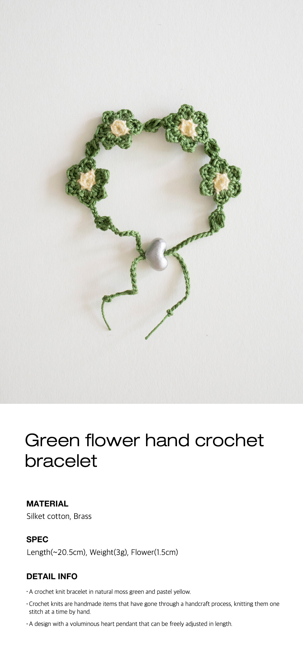Green flower hand crochet bracelet