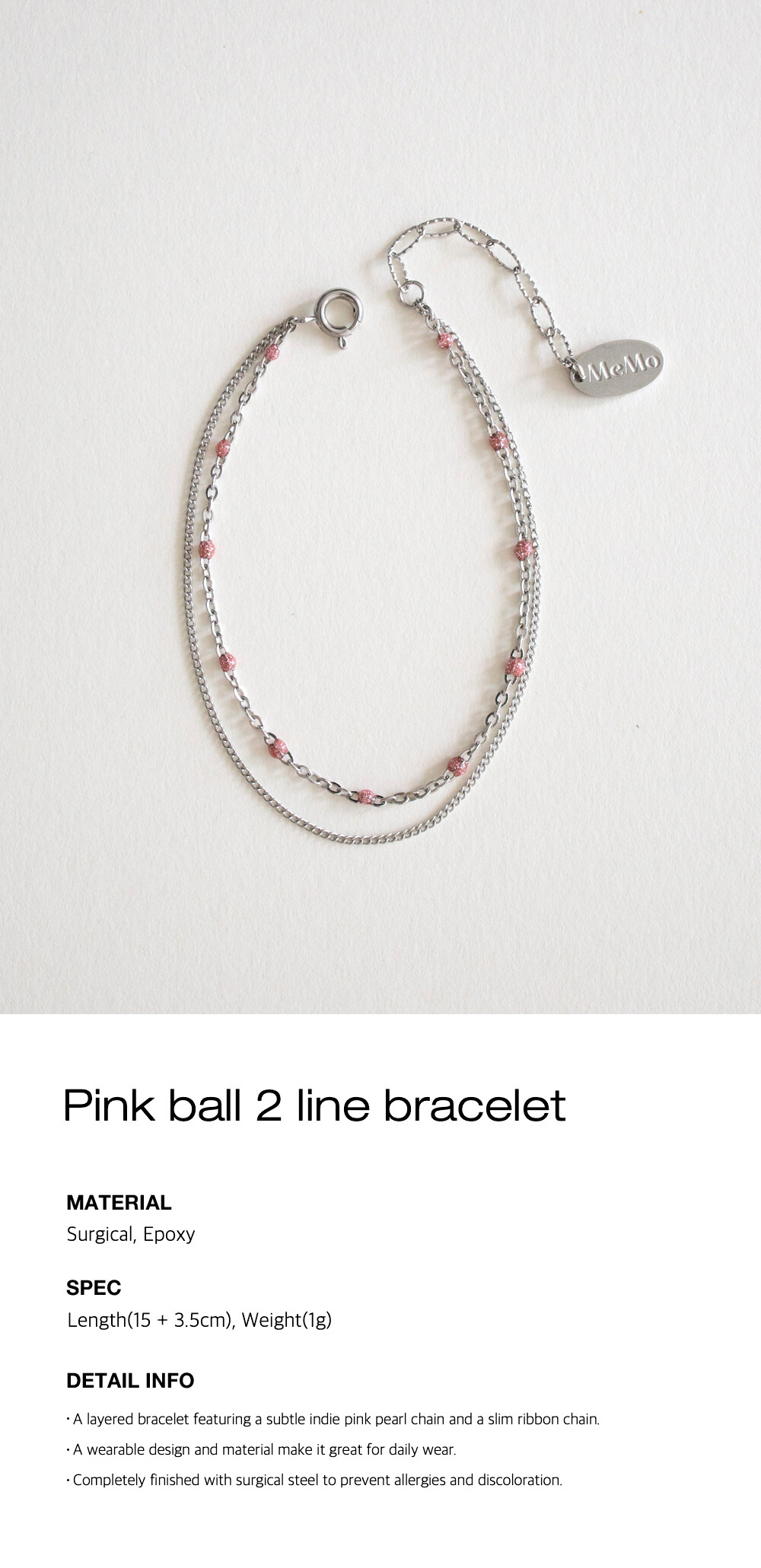 Pink ball 2 line bracelet