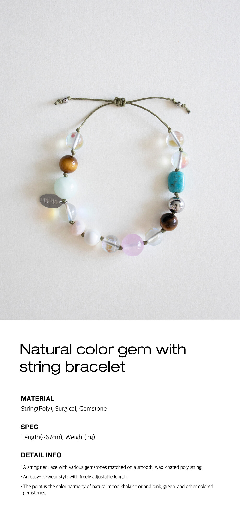 Natural color gem with string bracelet