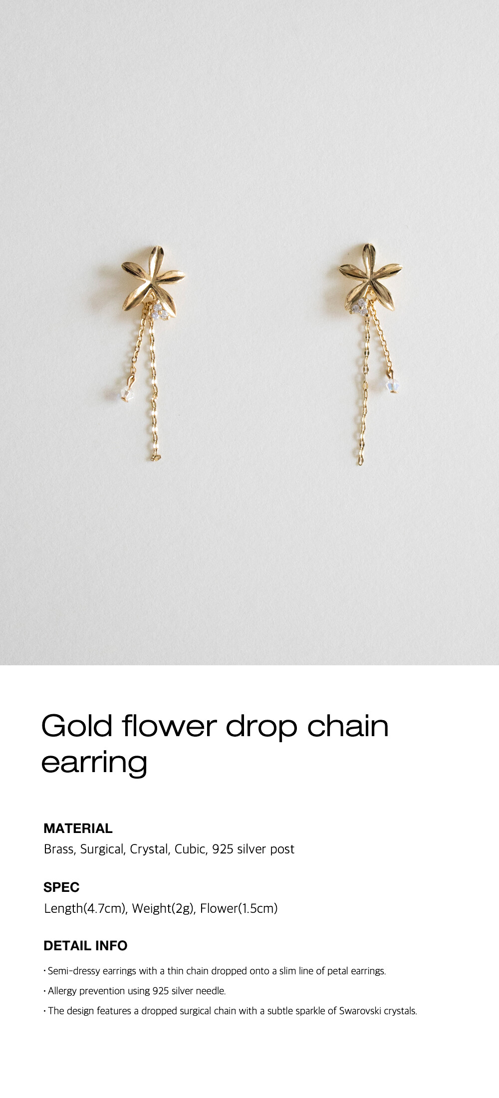 Gold flower drop chain earring