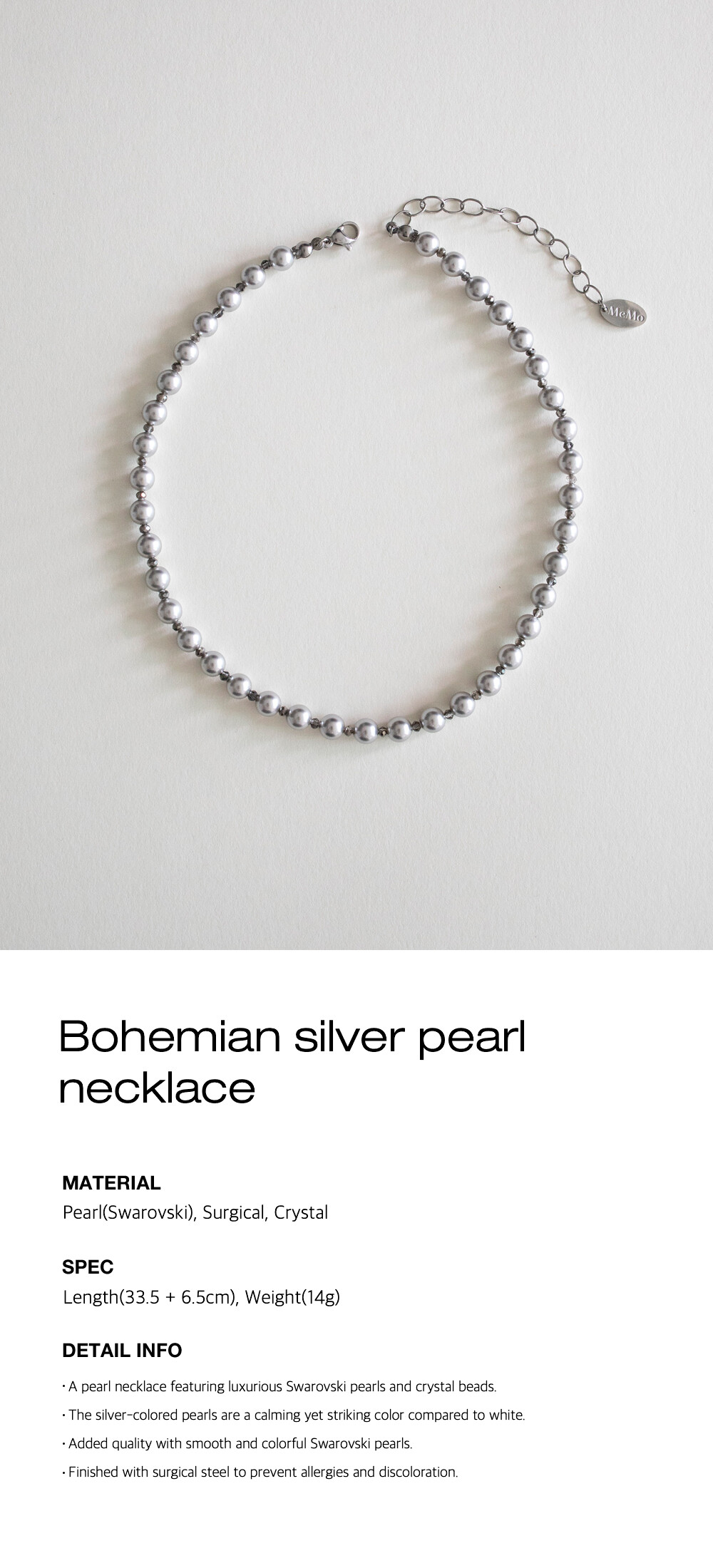 Bohemian silver pearl necklace