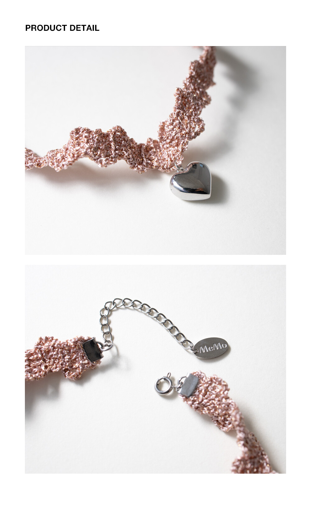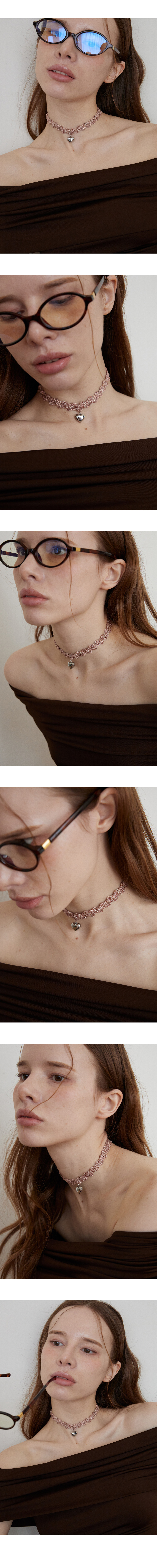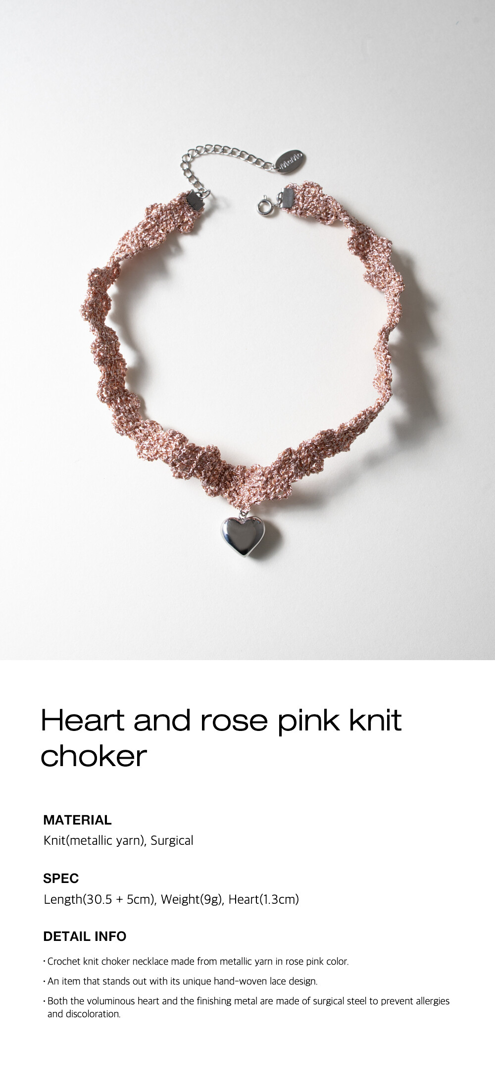 Heart and rose pink knit choker