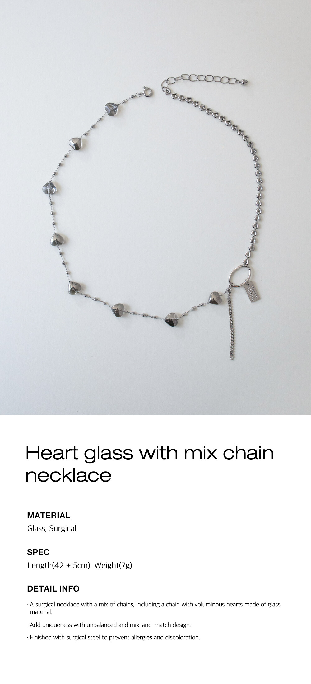 Heart glass with mix chain necklace