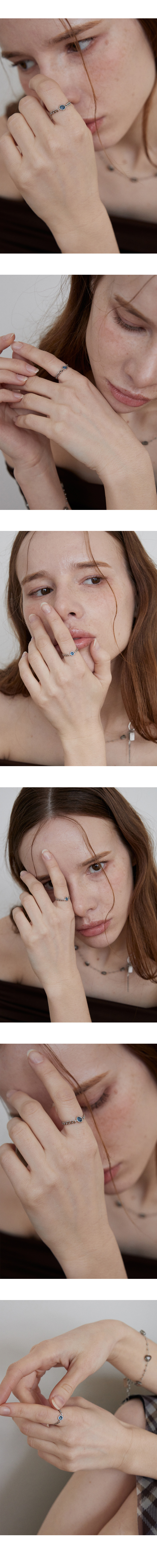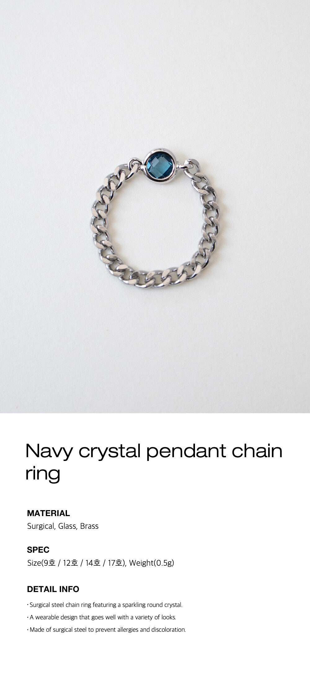 Navy crystal pendant chain ring