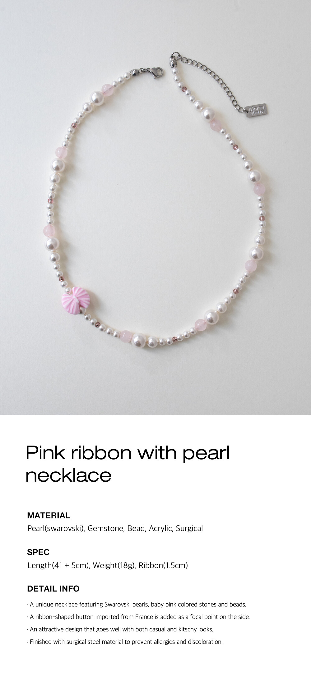 Pink ribbon with pearl necklace