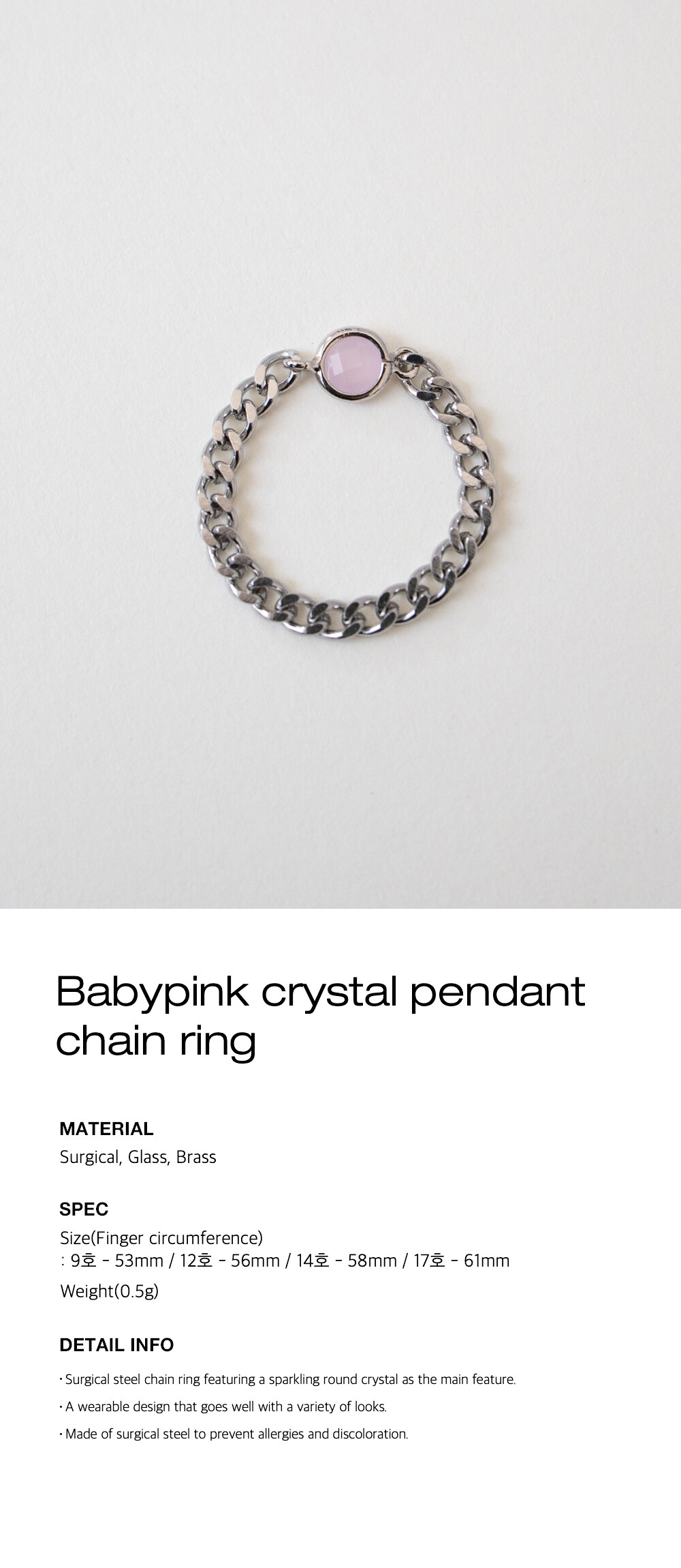 Babypink crystal pendant chain ring