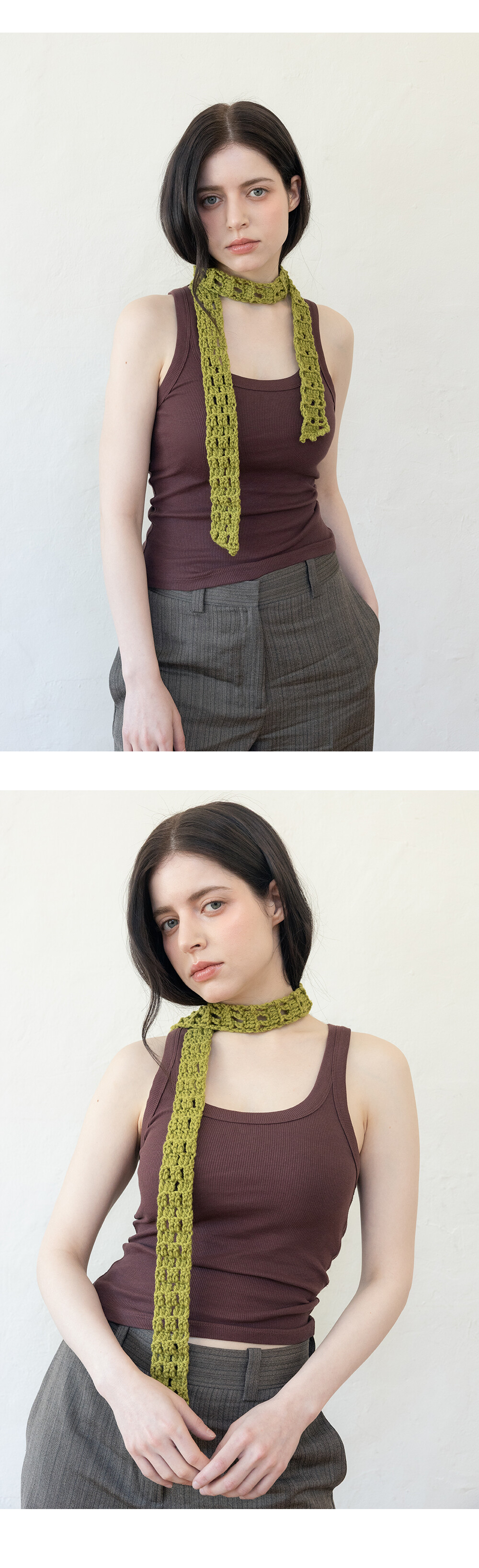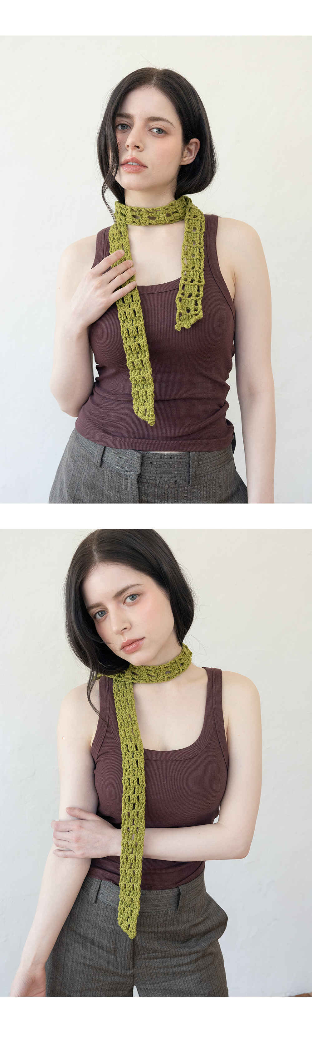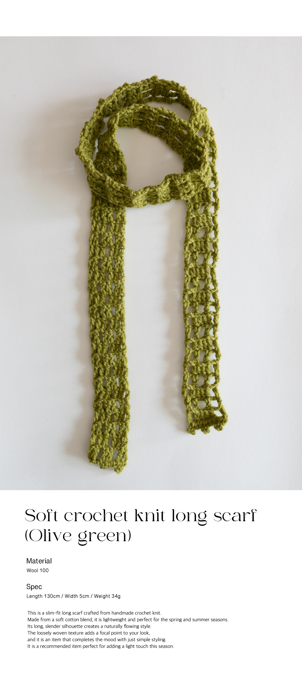 Soft crochet knit long scarf (Olive green)