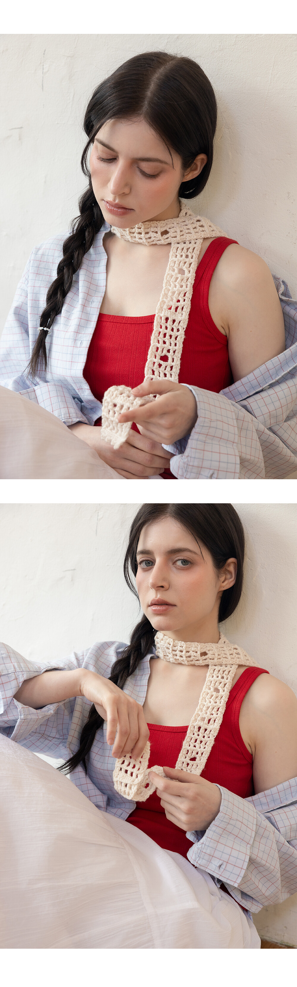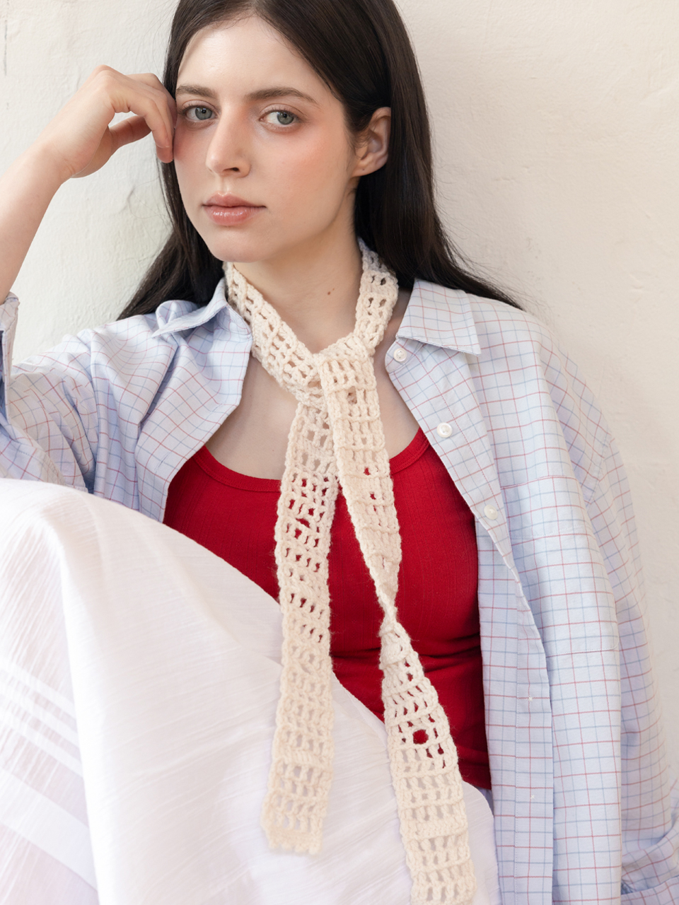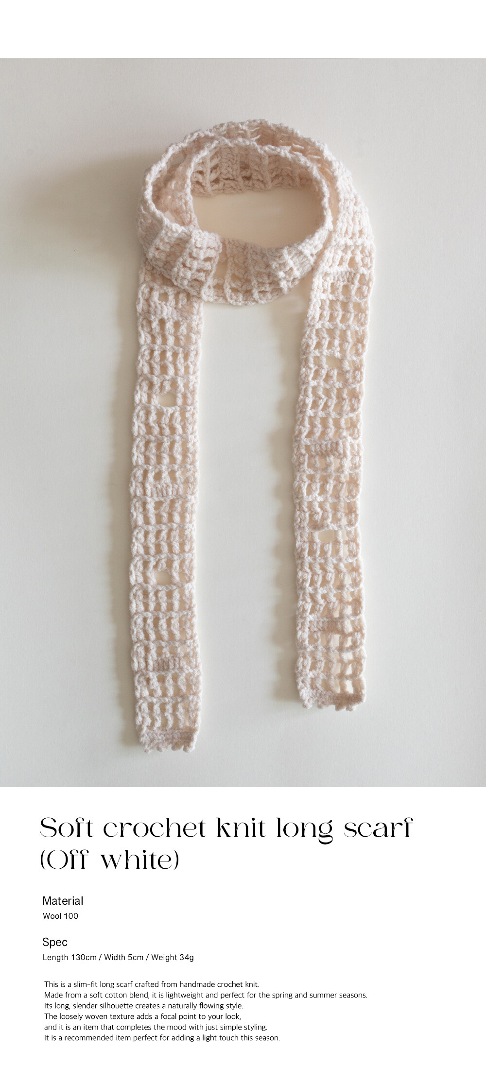 Soft crochet knit long scarf (Off white)